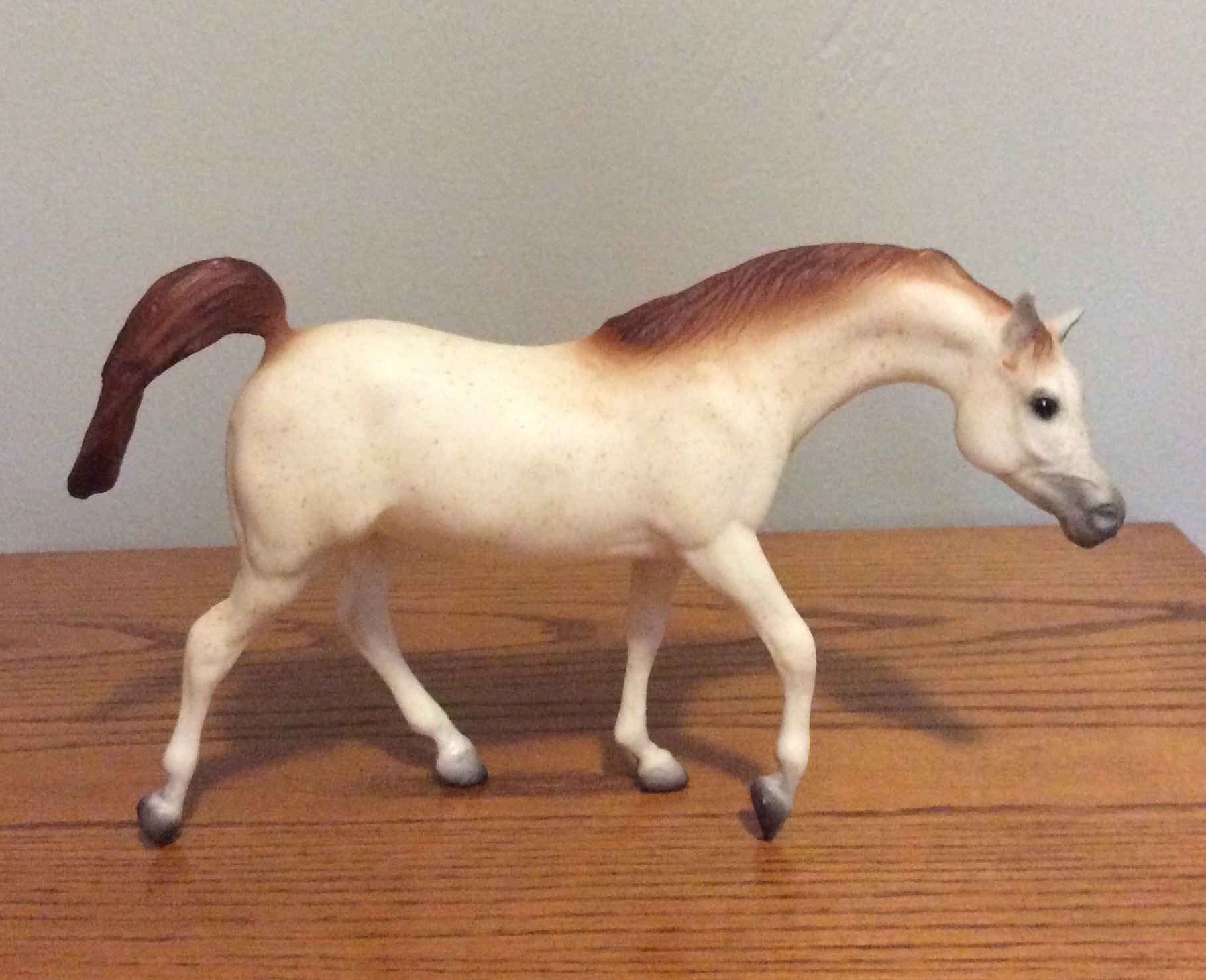 Matte fleabitten gray; chesnut mane and tail; grey shaded hooves and muzzle