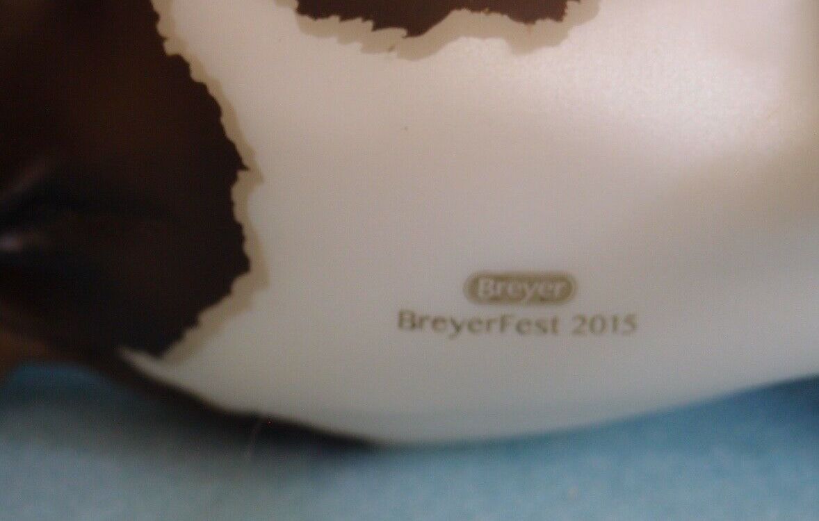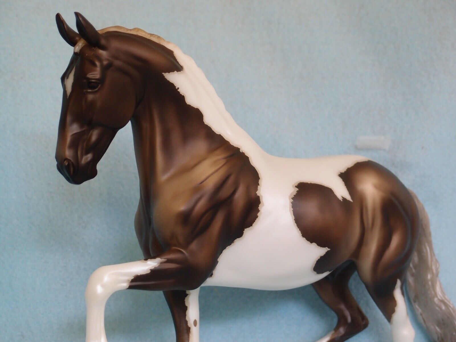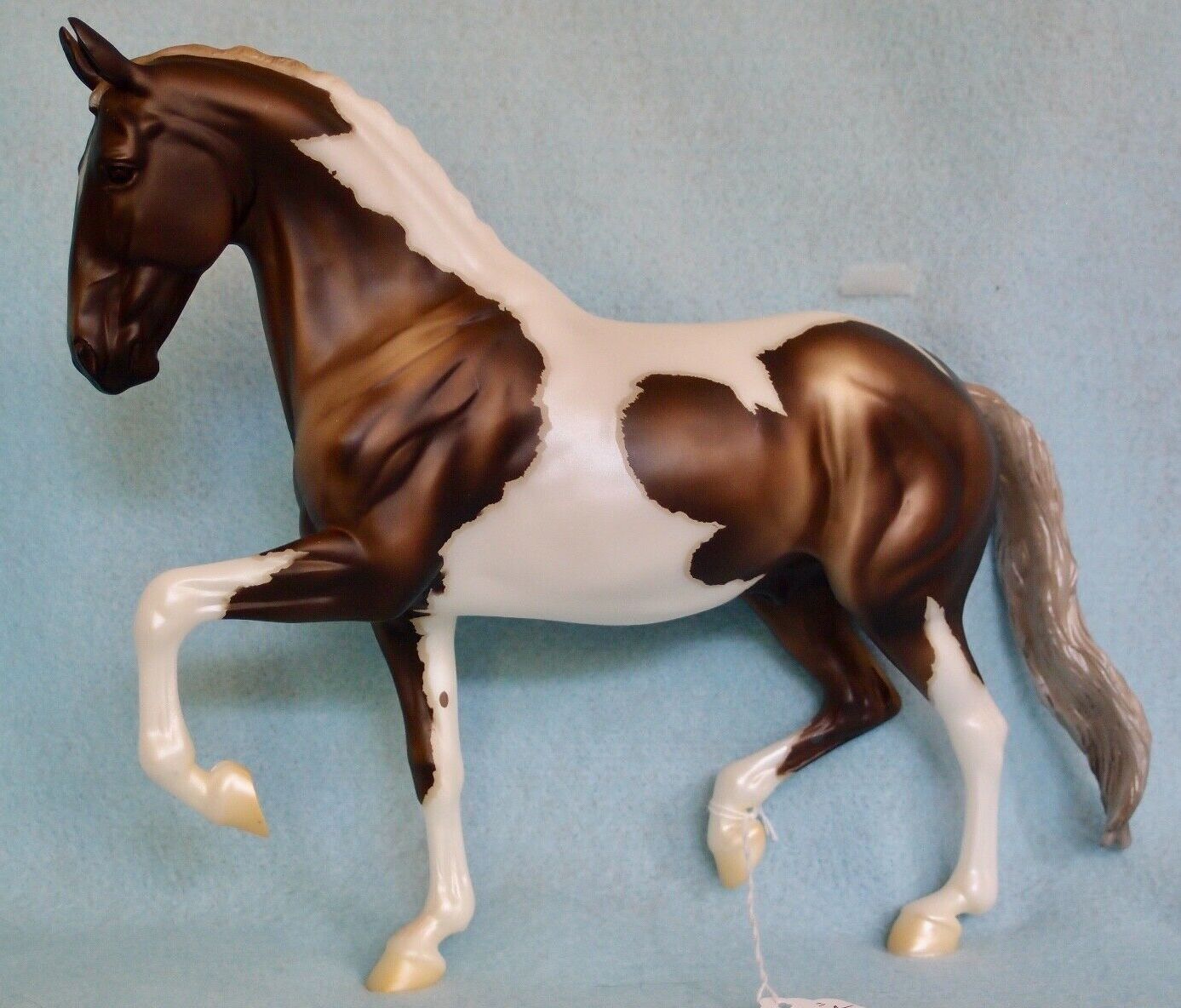 Matte chestnut pinto; mapped markings; large star; 4 stockings; pearly tail; BreyerFest Connoisseur SR; 1/350