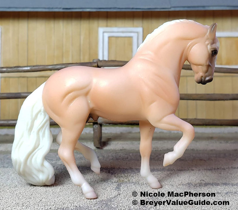Matte palomino; white mane and tail; 4 socks