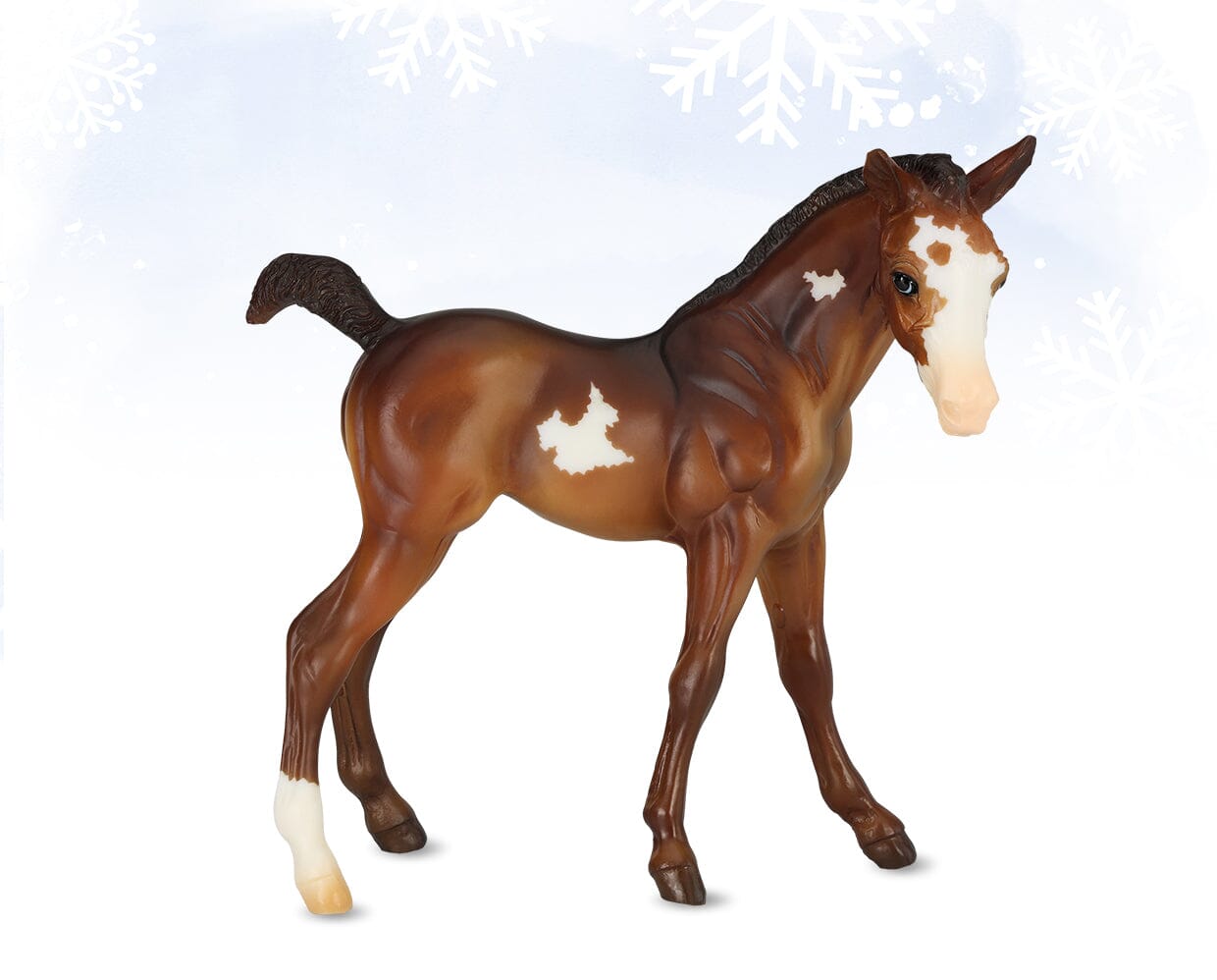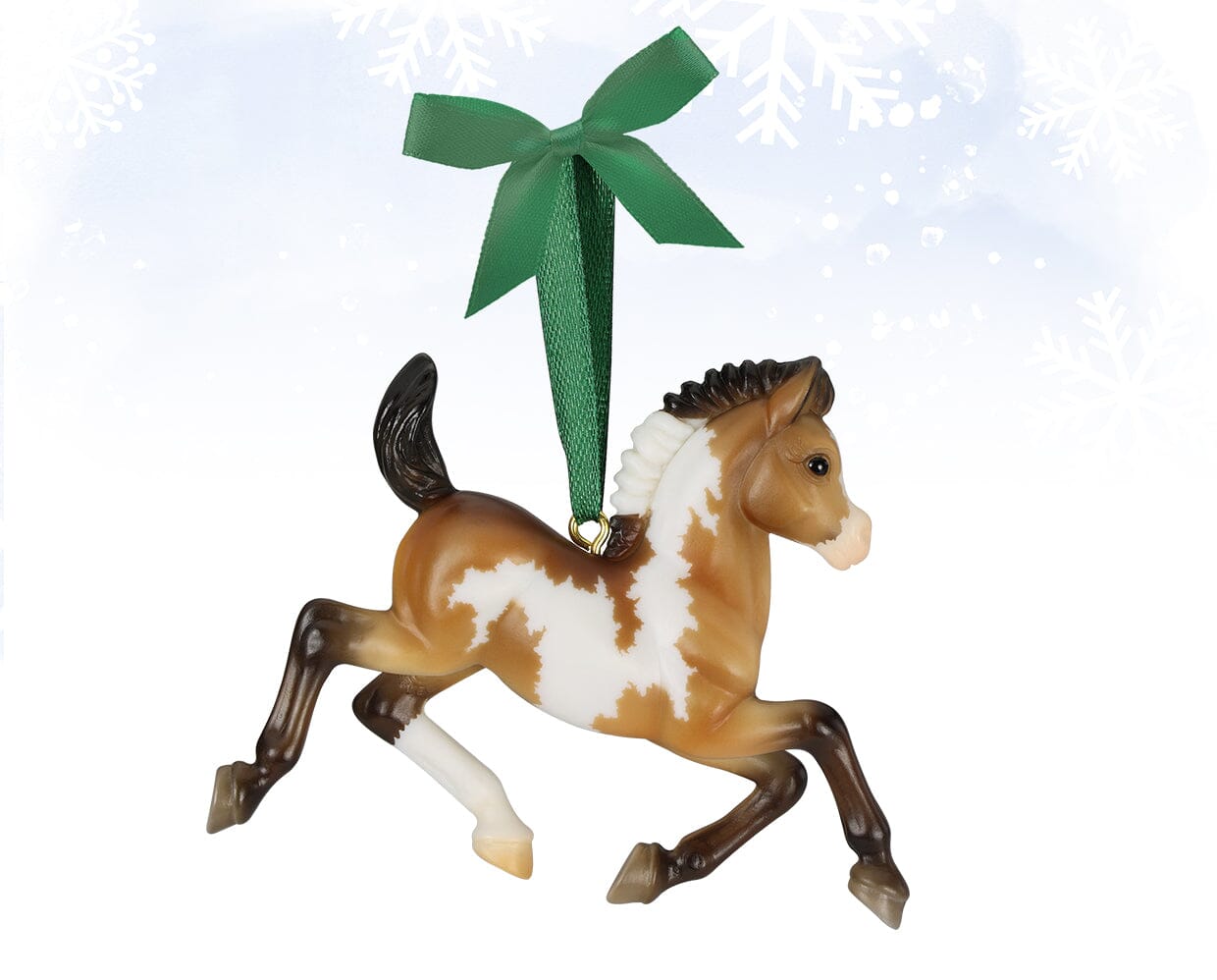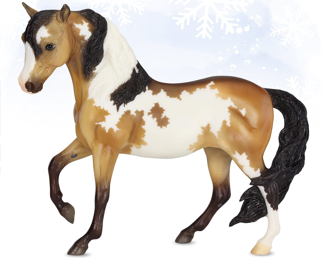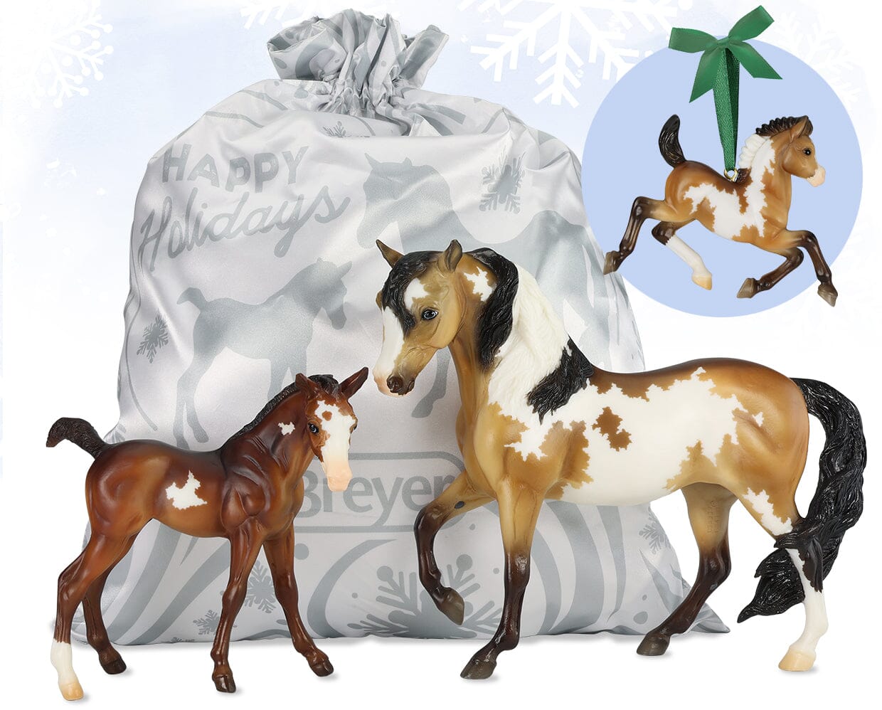 Mare: matte sooty buckskin pinto, wide blaze, 1 hind sock Foal: matte sooty buckskin pinto, wide blaze over muzzle, 1 hind sock Includes ornament, Limited Edition Issue price: $75 Valued as set.