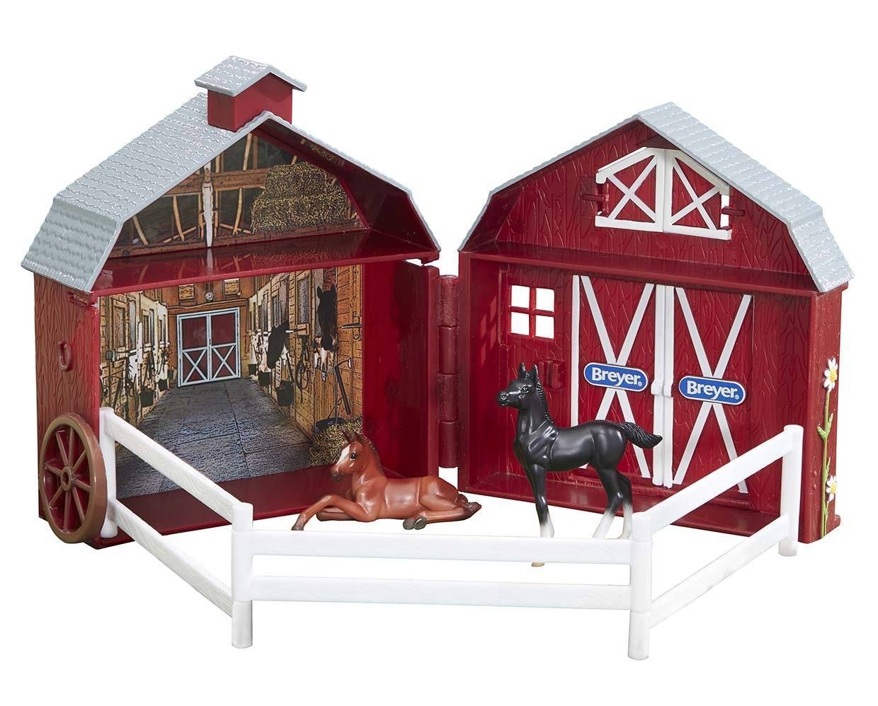 Matte chestnut, elongated star, includes barn and fence – with Standing Foal