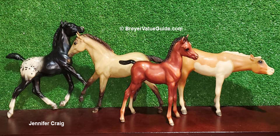 Matte palomino pinto; apron face; JCPenney SR – with Action Stock Horse Foal; Proud Arabian Foal; Running Foal