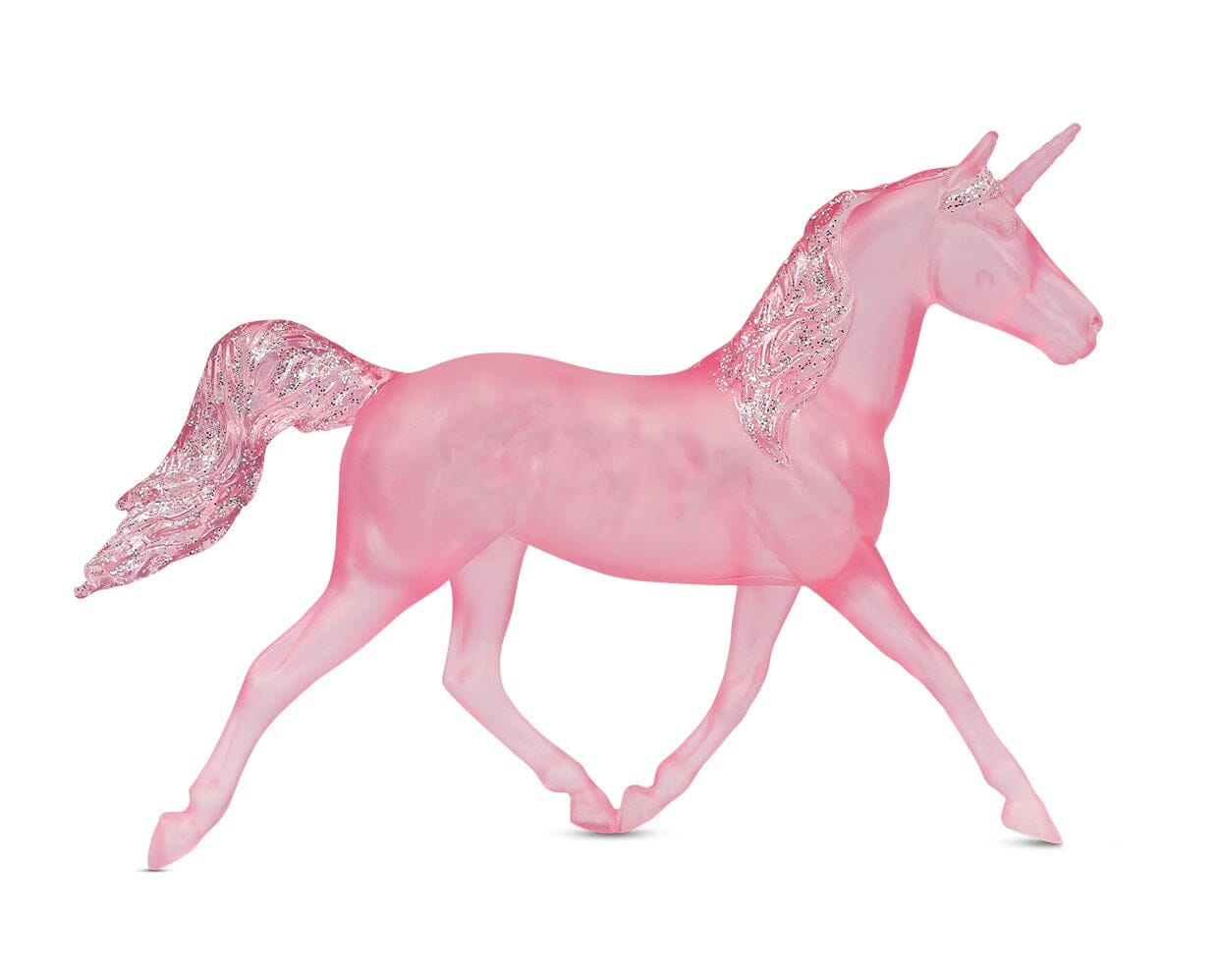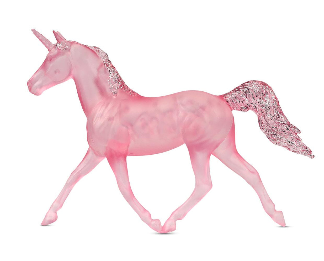 Translucent pink unicorn, glitter mane and tail