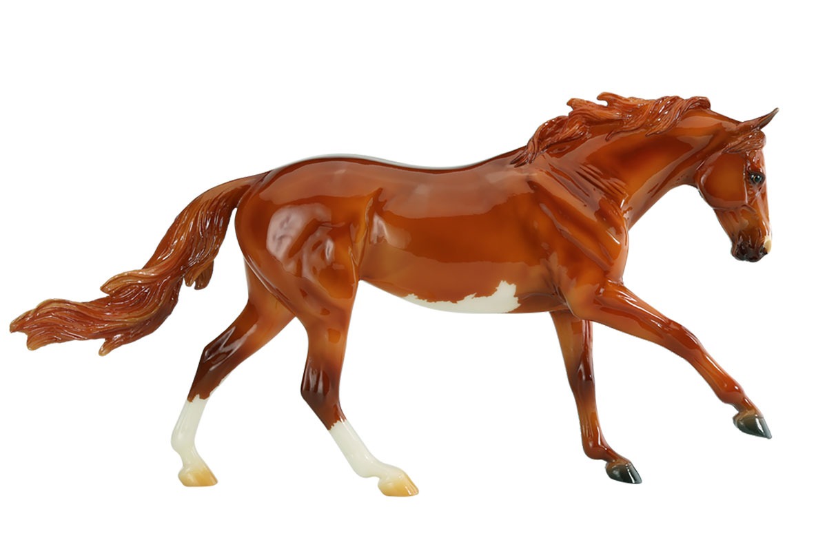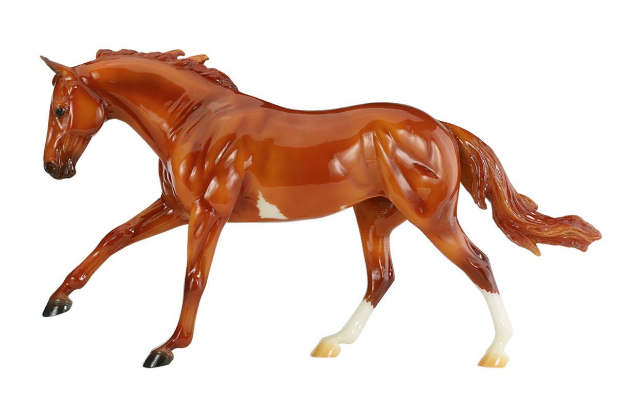 Glossy shaded chestnut pinto, crooked stripe, 2 hind socks, BreyerFest Prize SR, 1/60