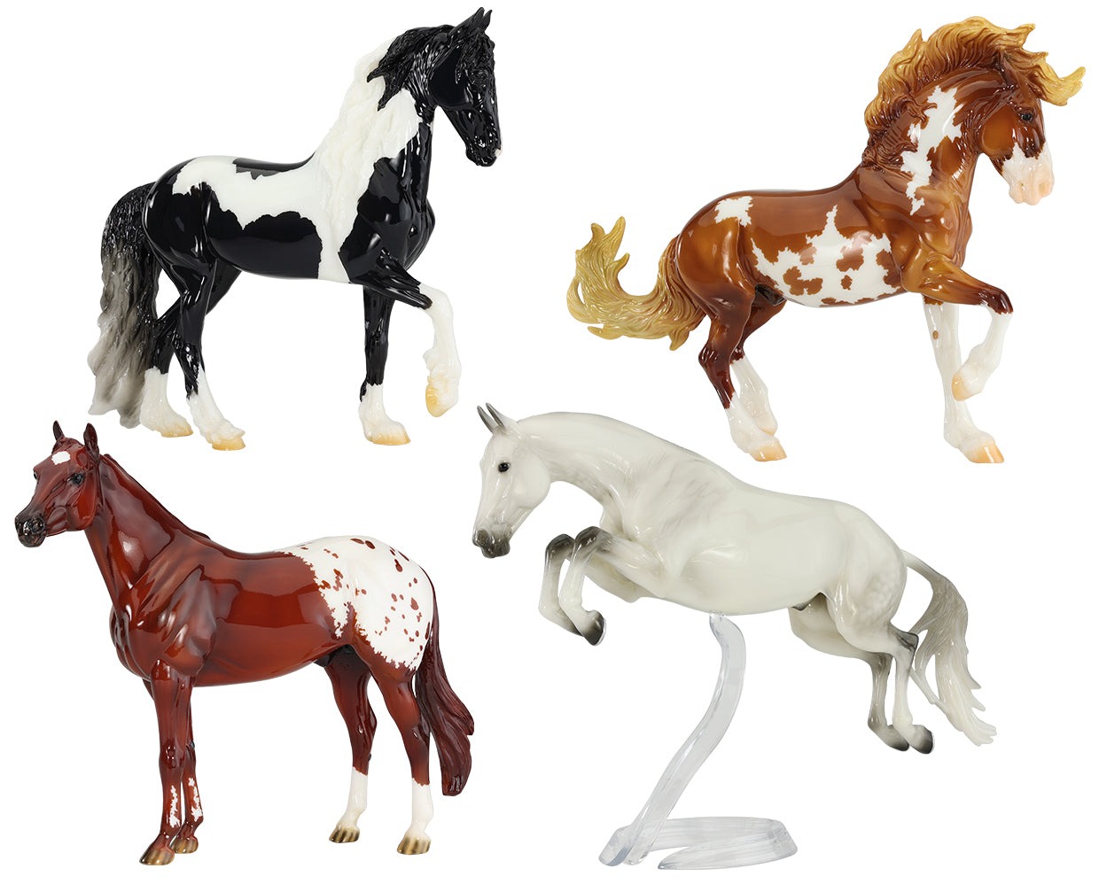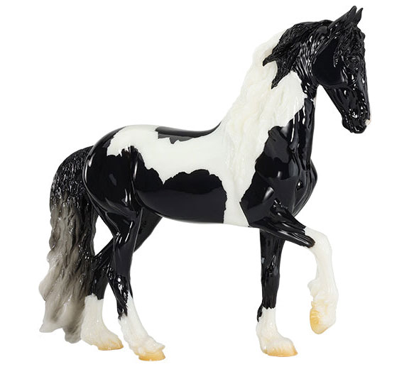 Glossy black and white pinto, low stripe/snip, 4 socks, Collector Club Appreciation SR