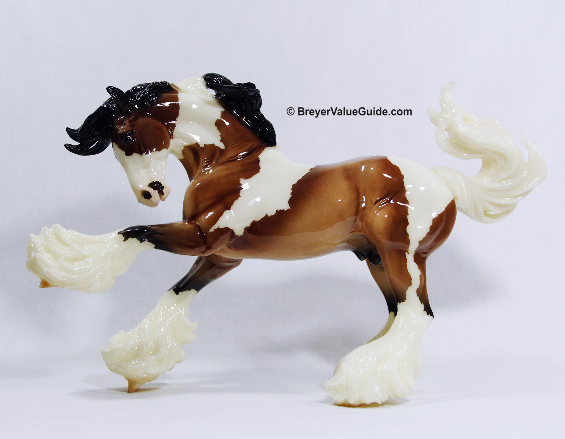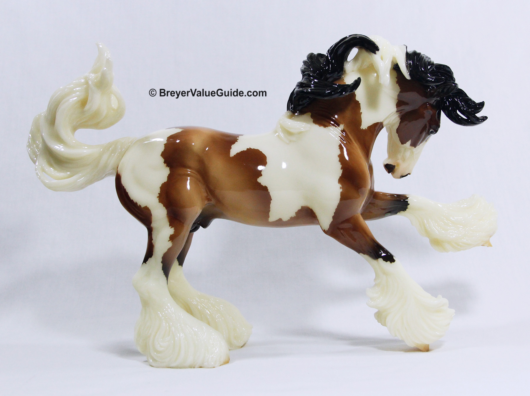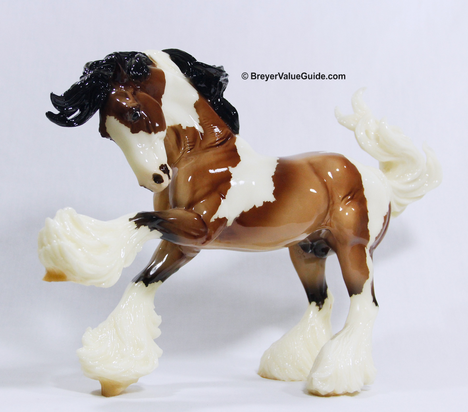 Glossy bay pinto; stenciled bald face, 4 socks, BreyerFest Prize SR