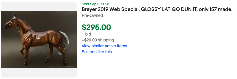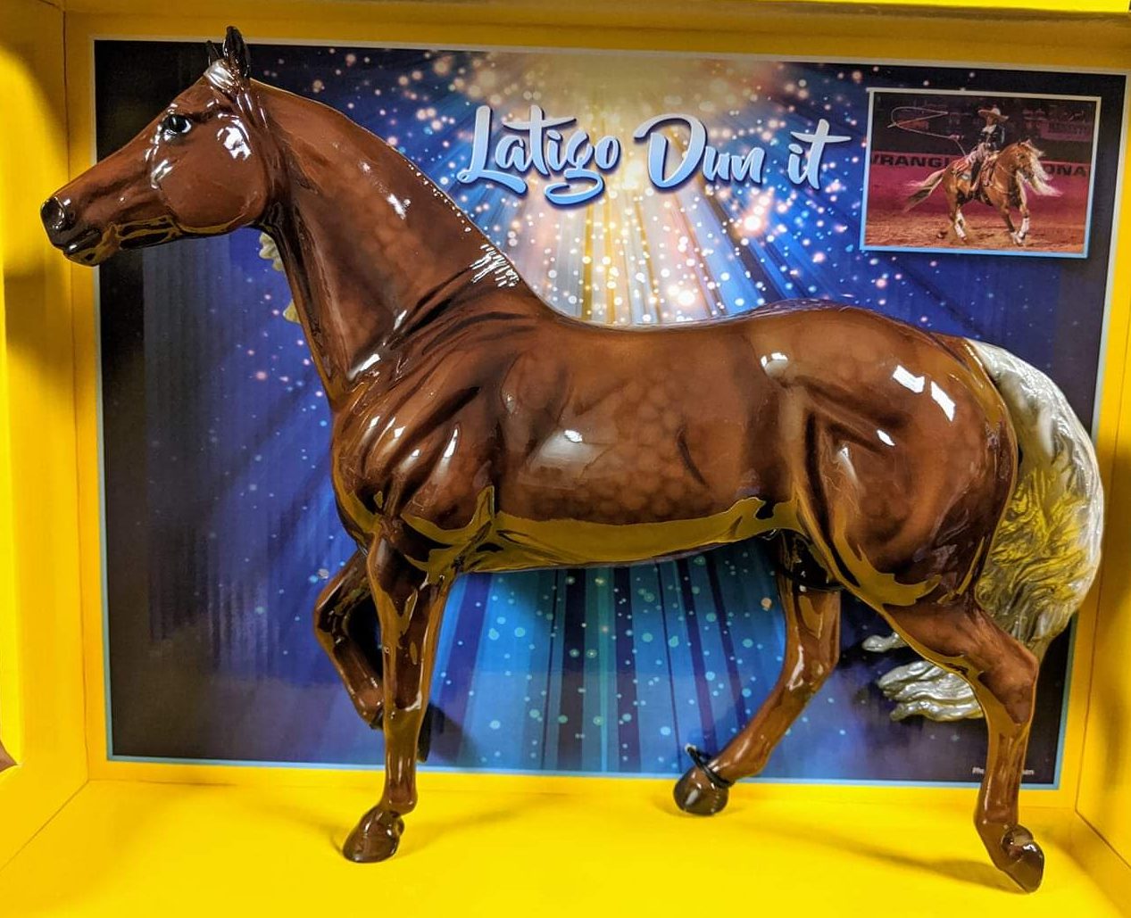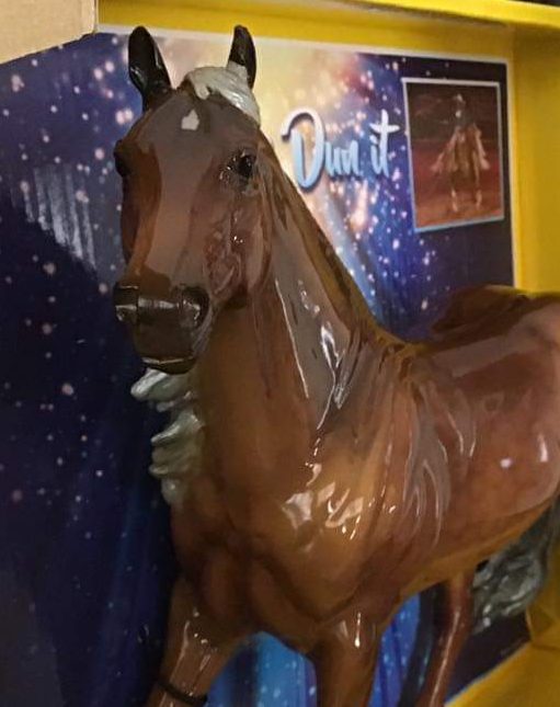 Glossy dark golden palomino; dapples; grey shading in mane and tail; small star, Collector Club Appreciation SR, around 157 produced