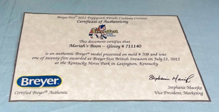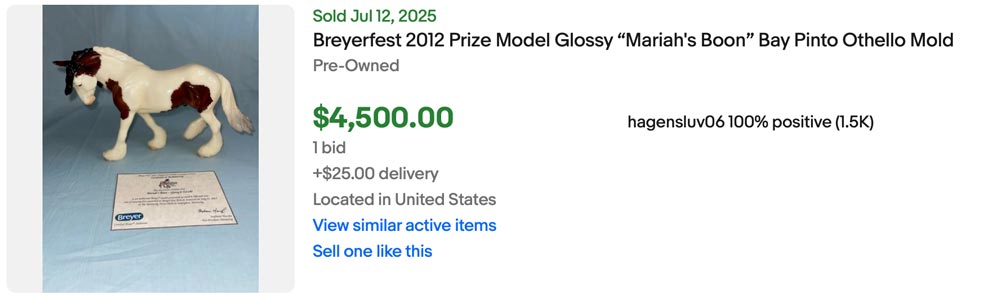 Glossy bay pinto; mostly white; natural hooves; BreyerFest Prize SR; 1/25