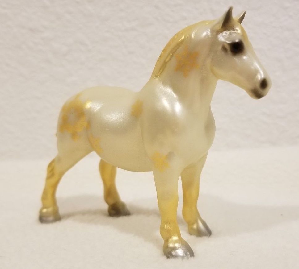 Pearlescent white; gold snowflake detail; silver hooves; JAH SR; 1/375