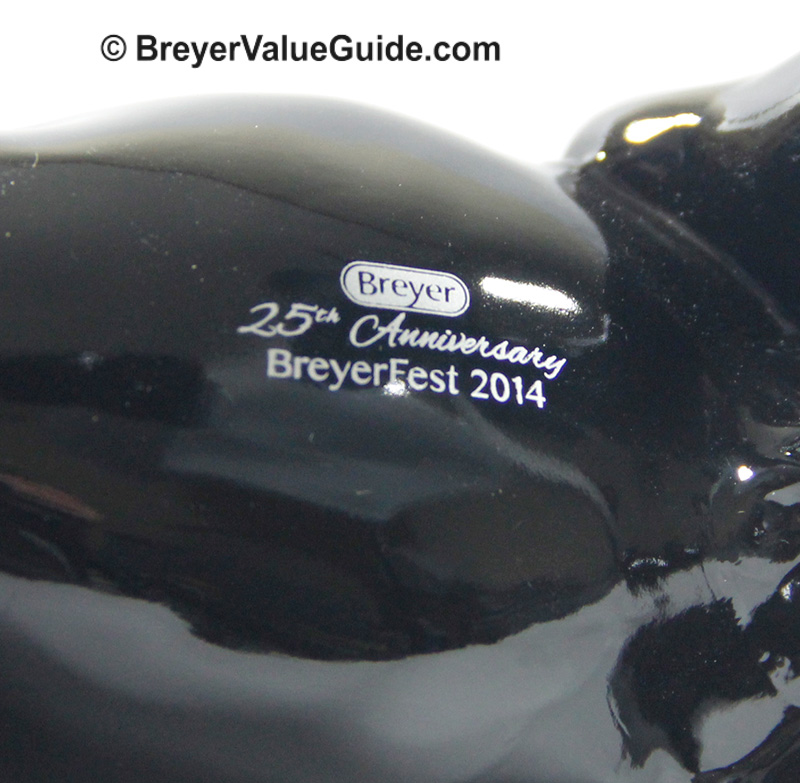 Glossy black with 25th Anniversary stamp on belly; silver base; BreyerFest Celebration SR