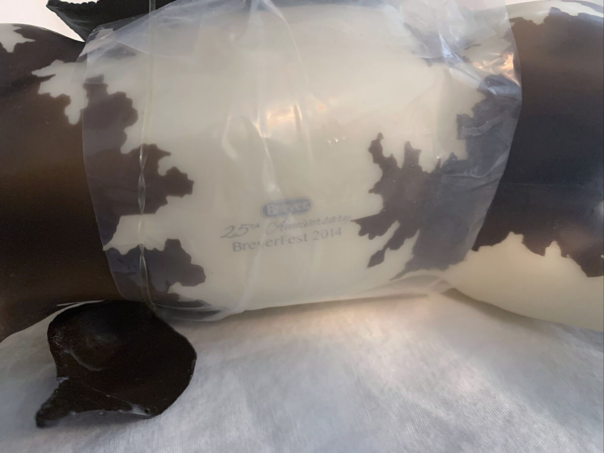Matte grullo pinto; detailed markings; white face; black with gold bridle; harness and saddle; “BreyerFest 2014” stamp; BreyerFest SR; 1/575