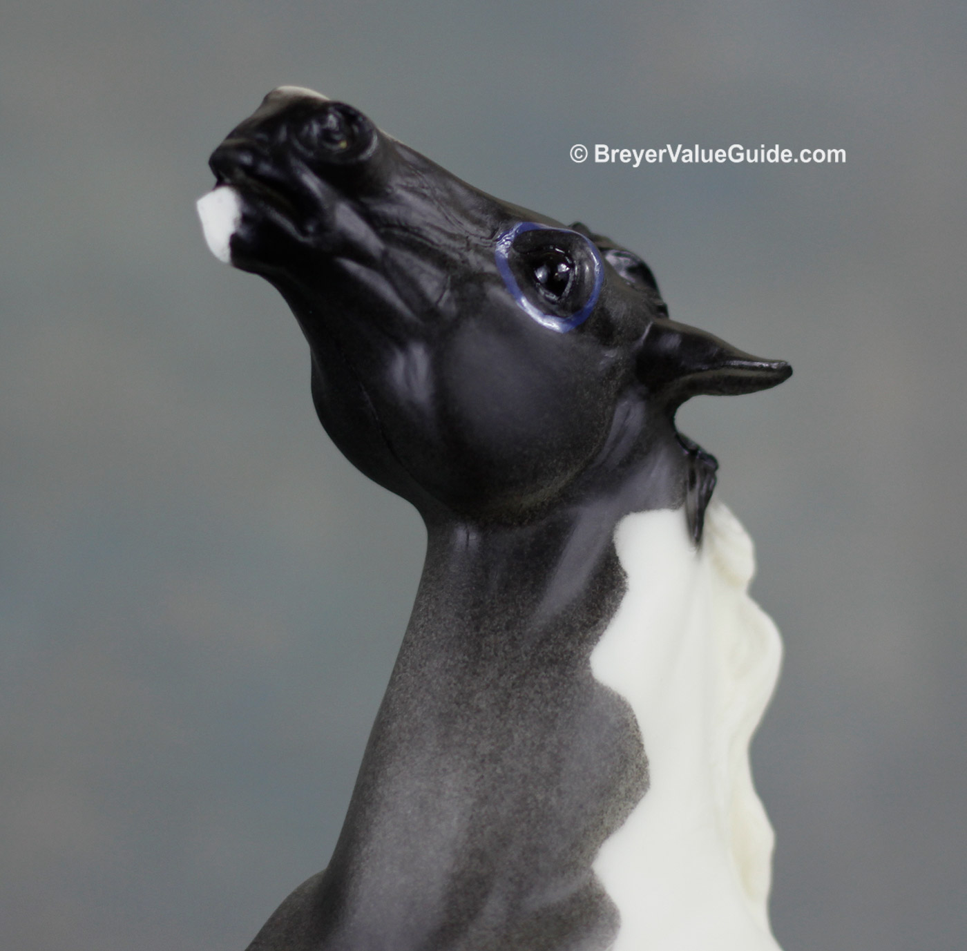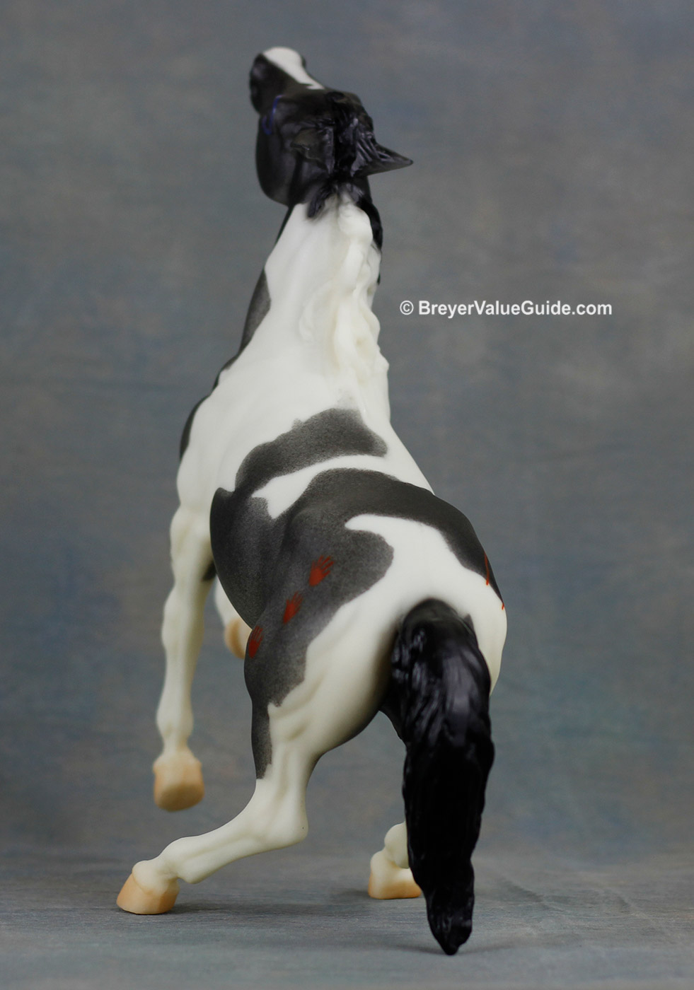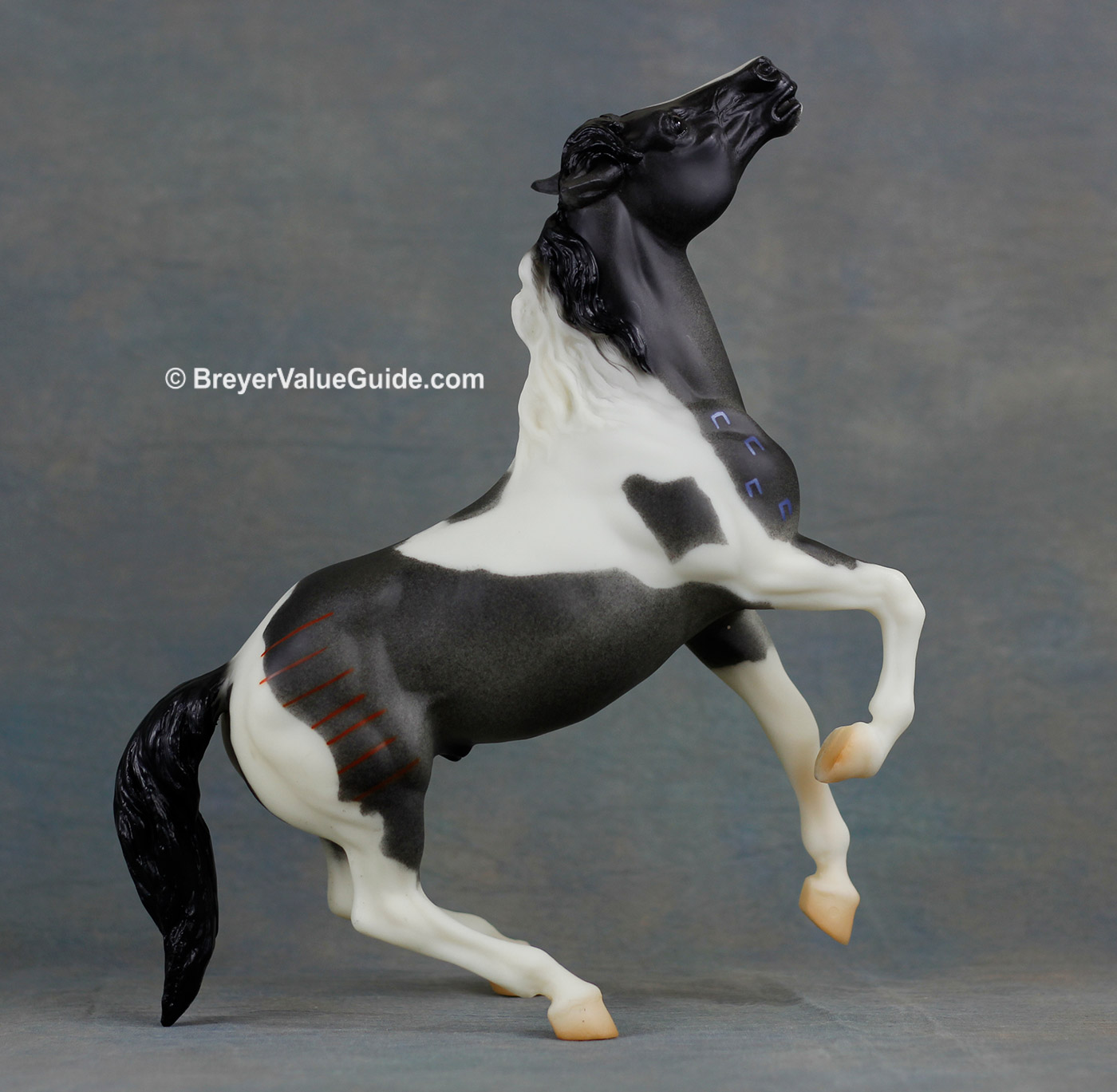 Matte blue roan pinto; white legs, natural hooves, blaze and chin spot, Native American symbols; QVC SR