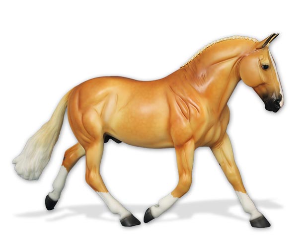 Matte palomino; dapples; braided mane; blaze; 4 stockings; “Collector Club 2017” on belly; Collectors Club SR