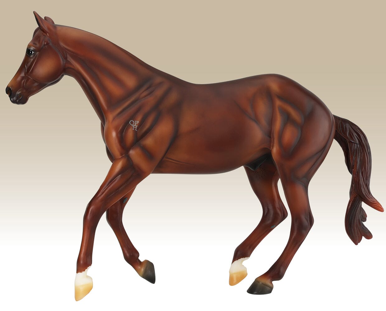 Matte shaded chestnut, star and snip, roached mane, brands on both shoulders, 2 low socks Issue price: $47