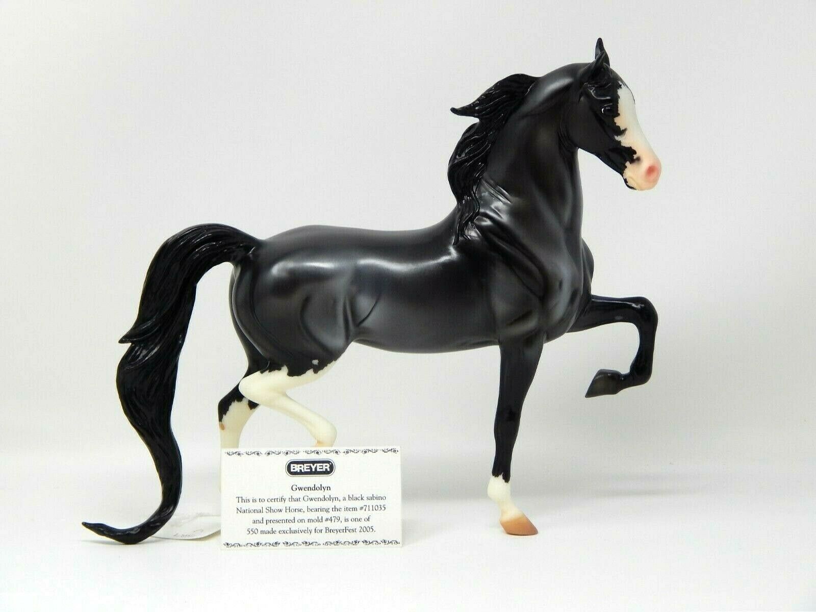 Metallic dark grey; high high white stockings; short front sock; stenciled apron blaze; BreyerFest SR; 1/550