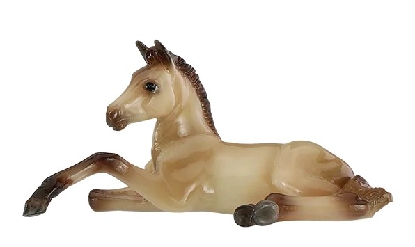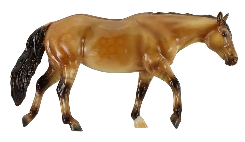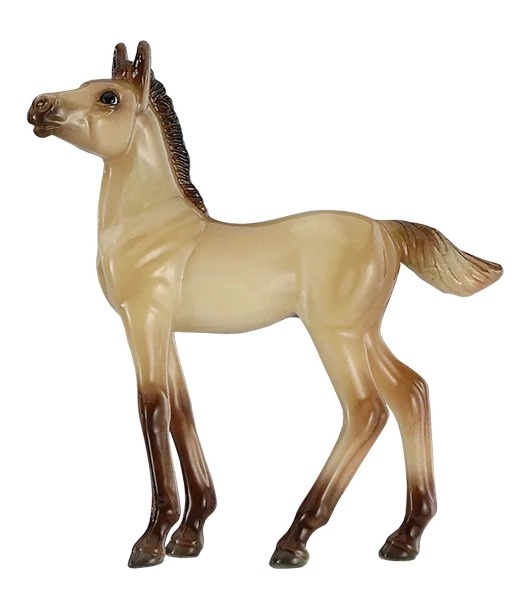 Mare: Glossy dun, snip, dapples, leg barring, dorsal stripe, 1 front sock