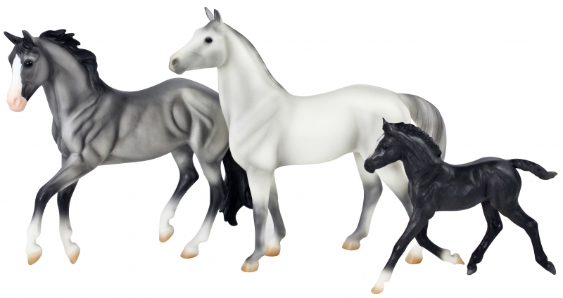 Matte grey; darker points; stenciled apron face; 4 socks -with Standing Thoroughbred; Haflinger Foal Valued as set.