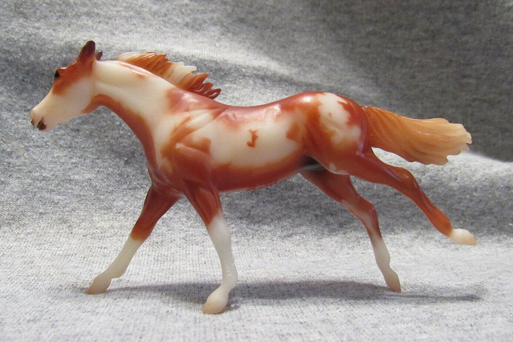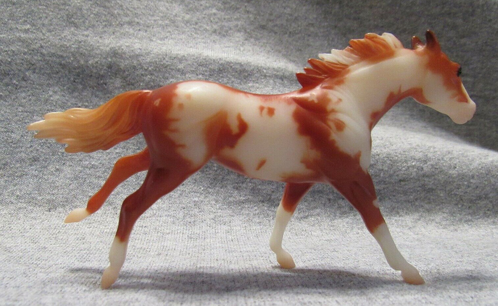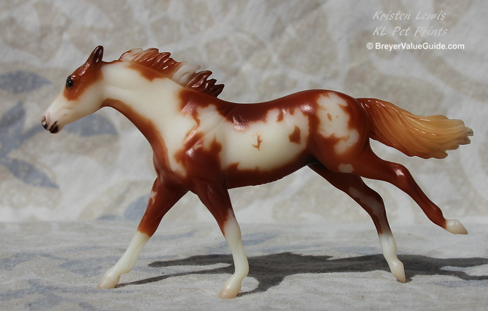 Matte chestnut pinto; bald face; 4 socks; Blockbuster release; Hidalgo Collection