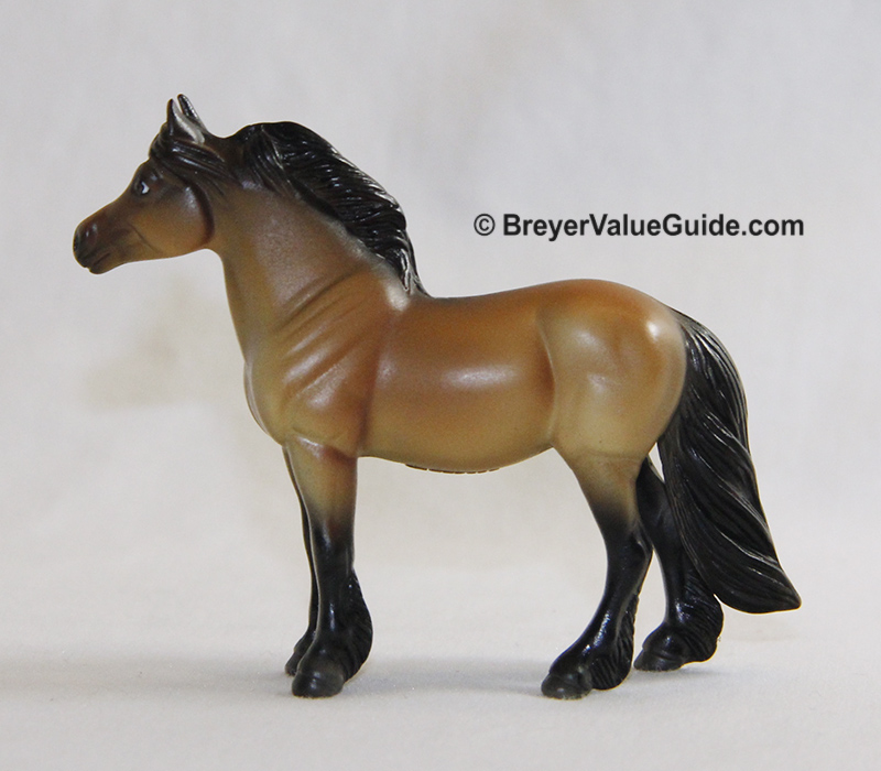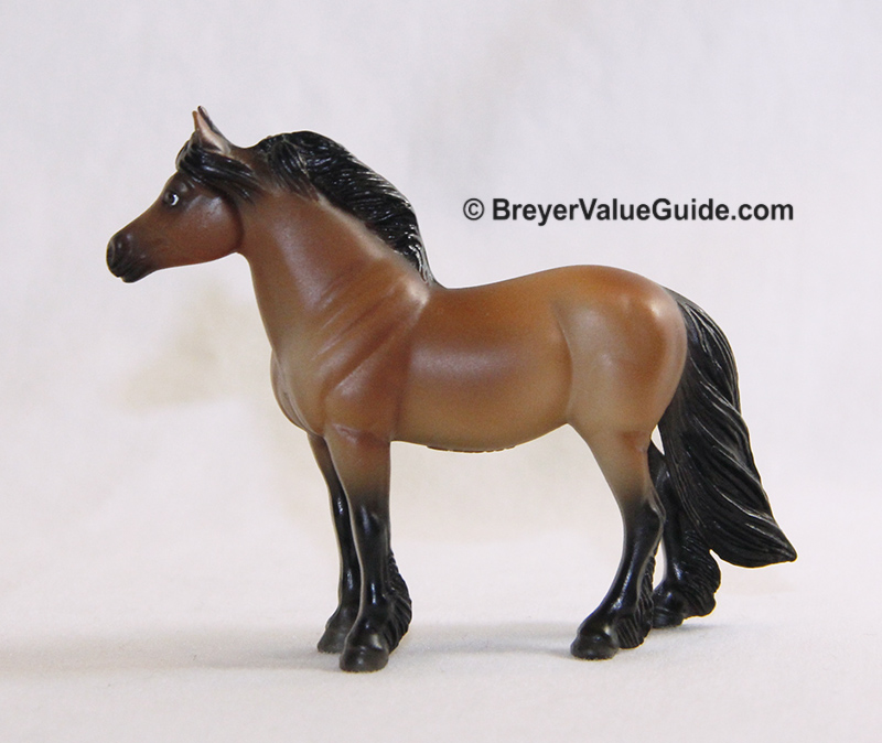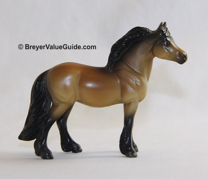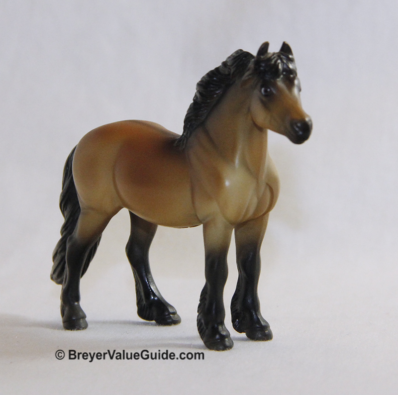 Matte shaded dun; black points; dorsal stripe; detailed eyes