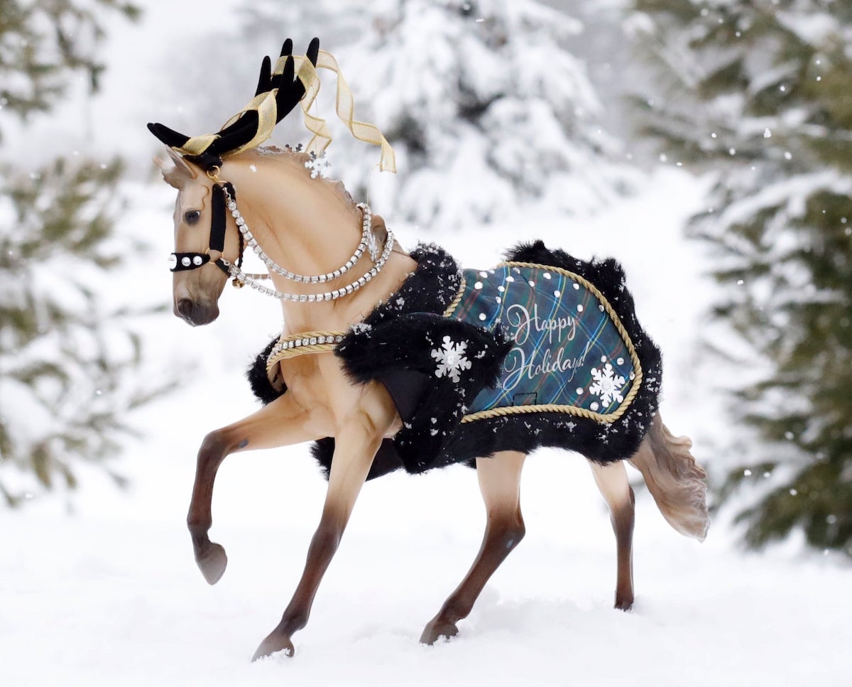 Light golden buckskin, with costume, 2023 Holiday Horse SR