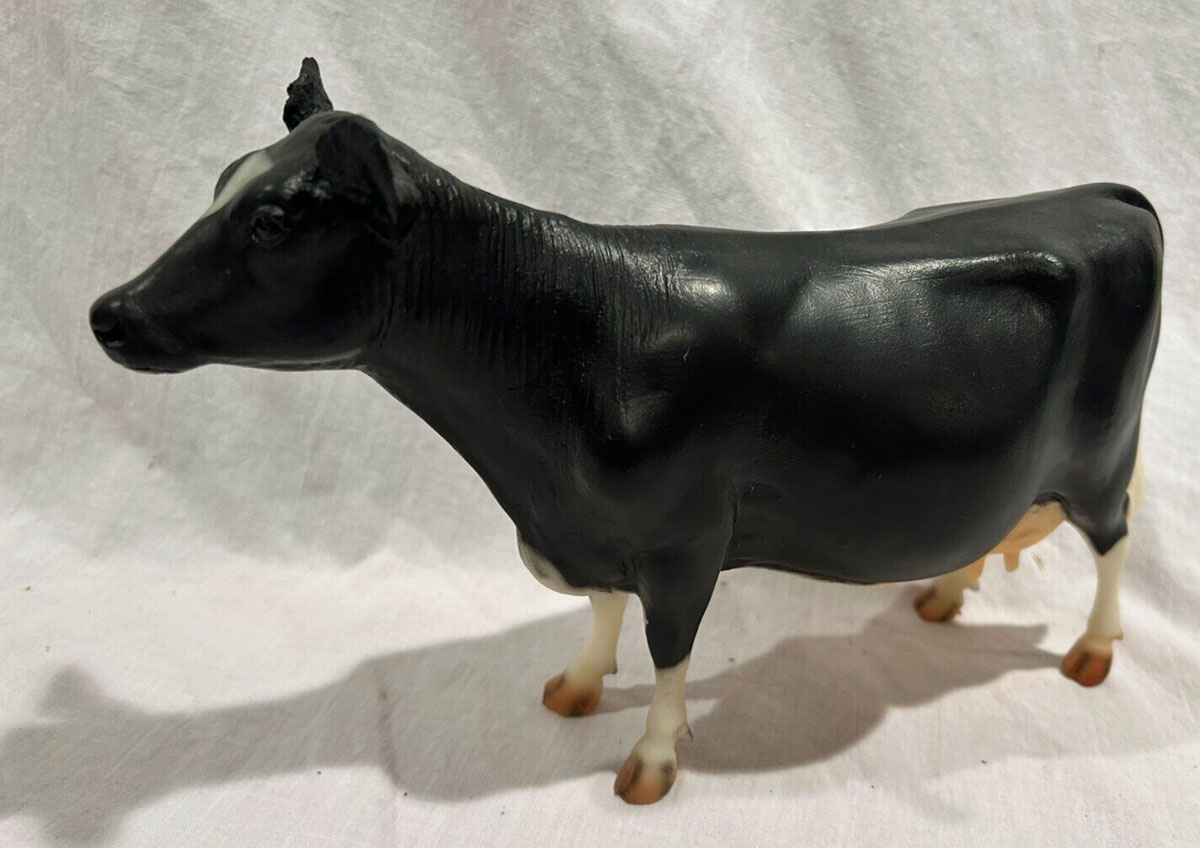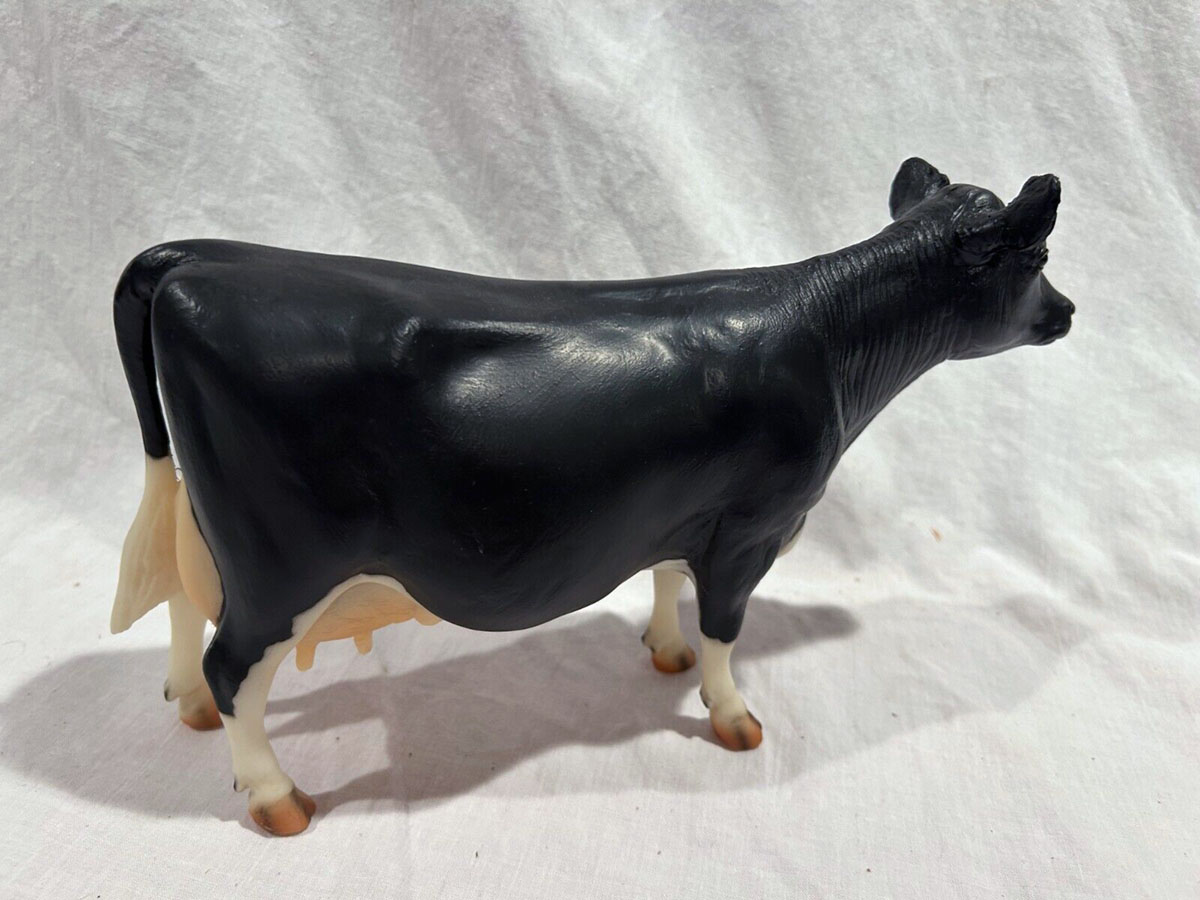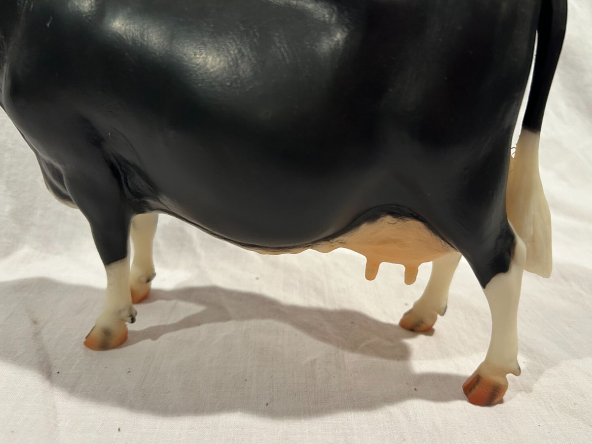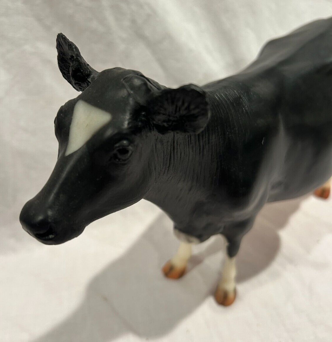 Matte black; white belly and legs; large triangle star, striped hooves, no horns