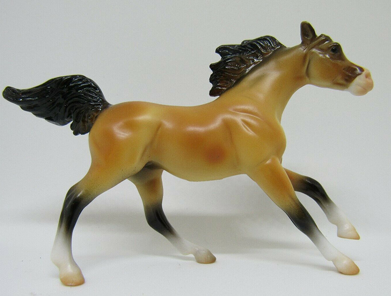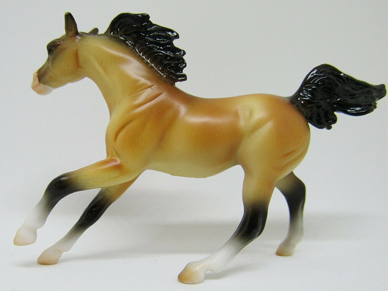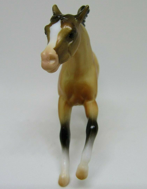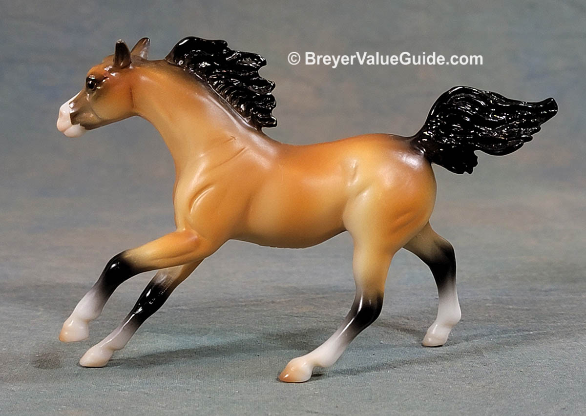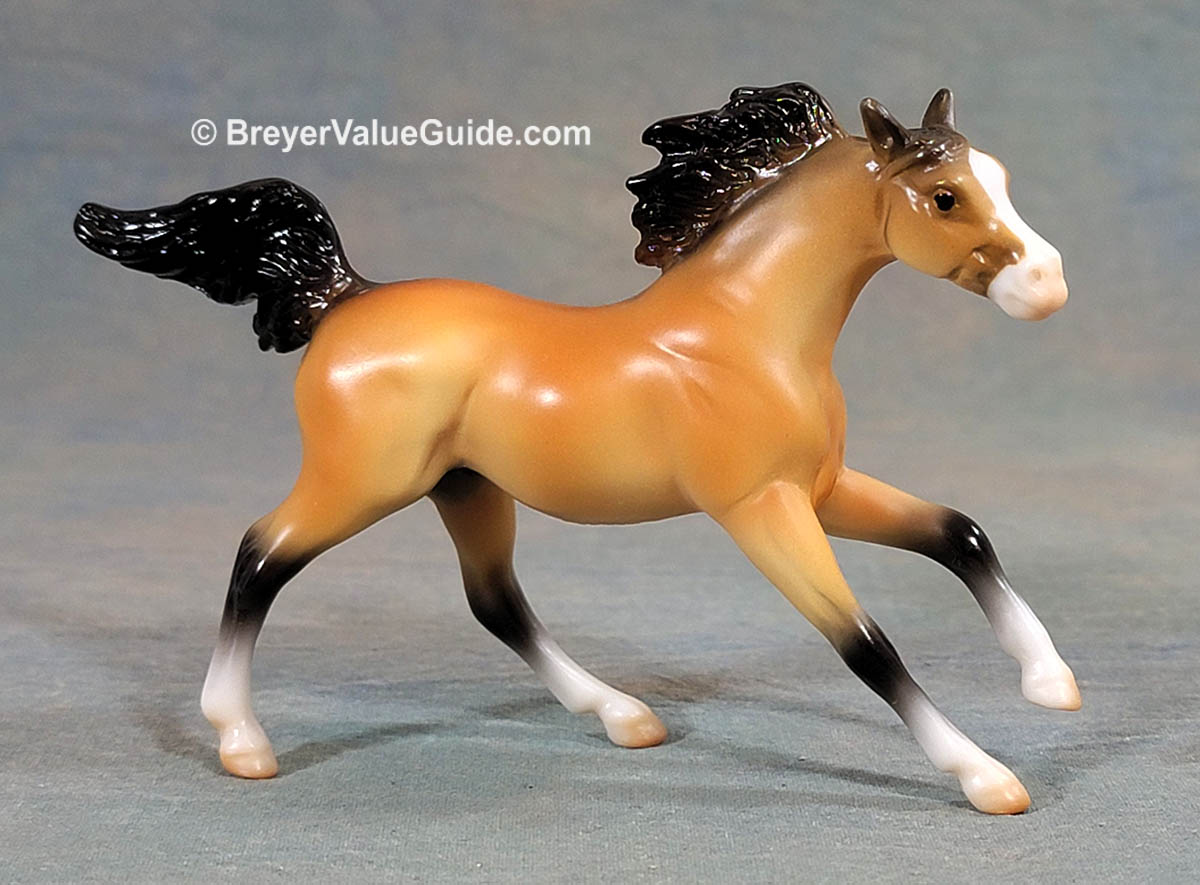 Matte sandy bay; black points; wide blaze; white muzzle; 4 socks