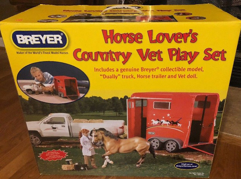 Matte dun; blaze; dorsal stripe; leg barring; 2 front socks – includes truck, trailer and doll