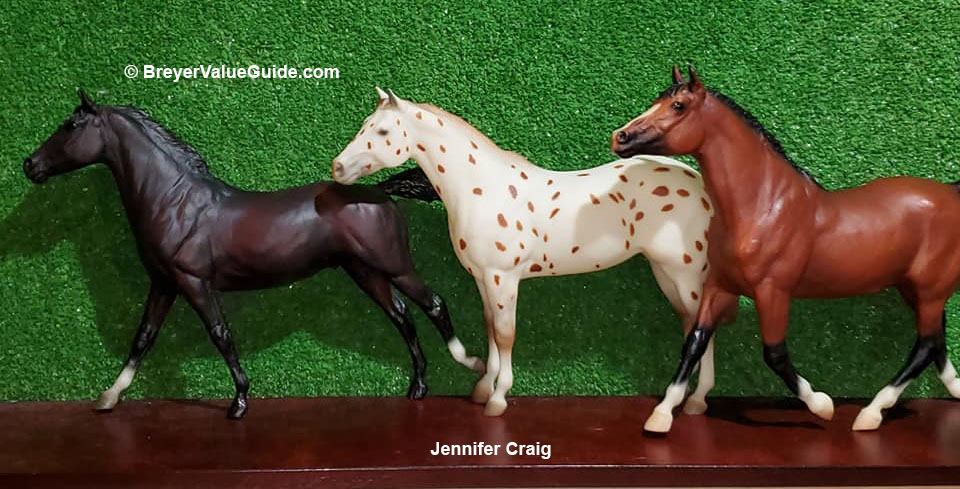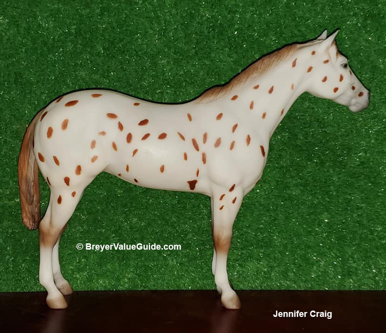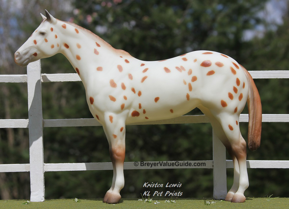 Matte chestnut leopard appaloosa; white with stenciled chestnut spots; light chestnut points; JCPenney SR; 1/2620 – with Phar Lap and Morganglanz