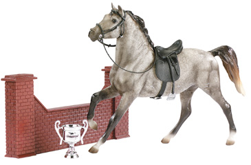 Matte resist dappled grey; darker points; 4 socks; with tack; jump and trophy