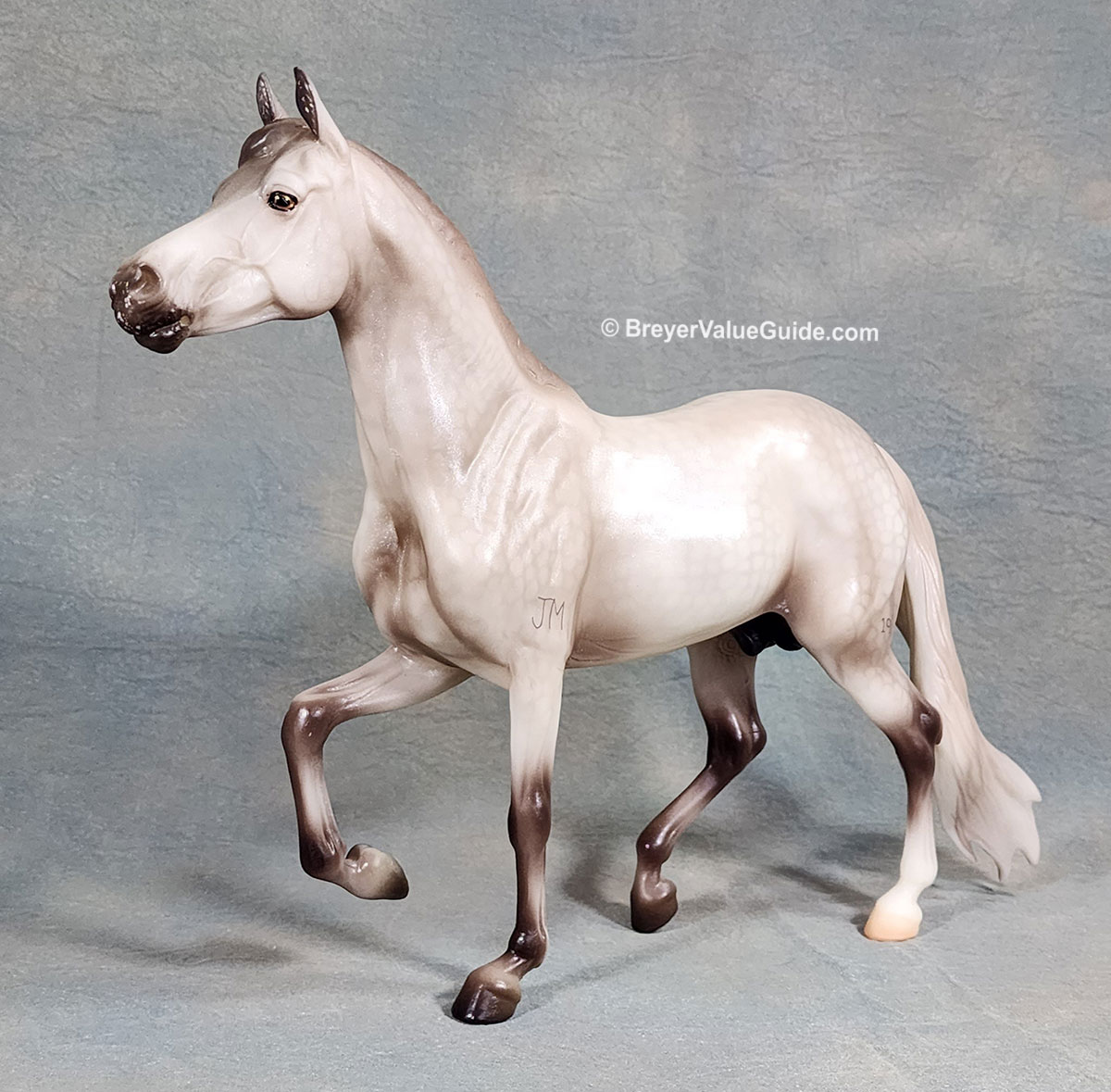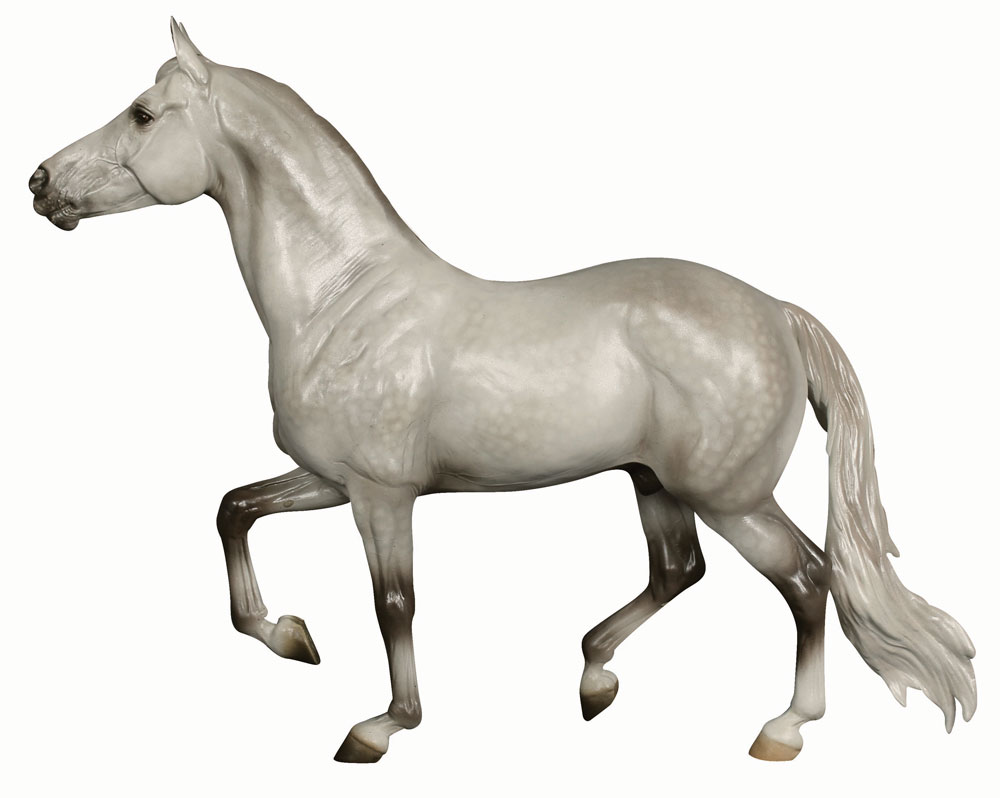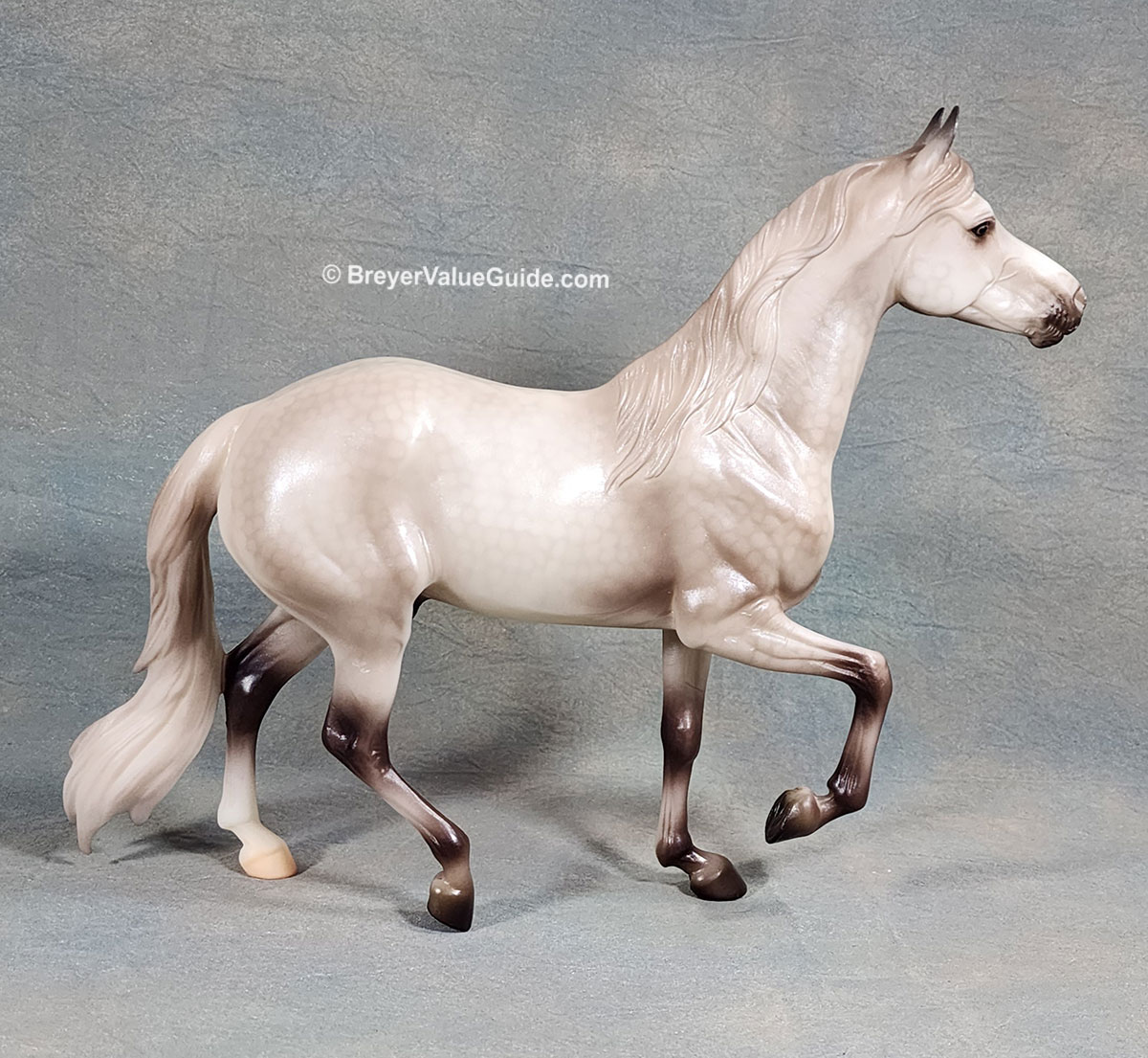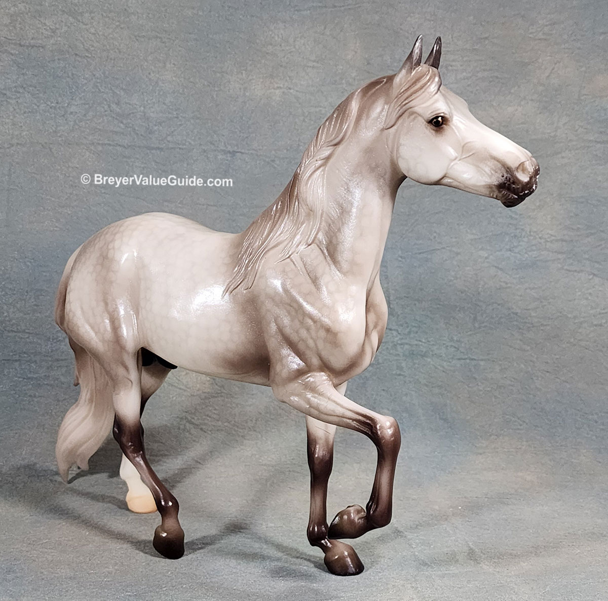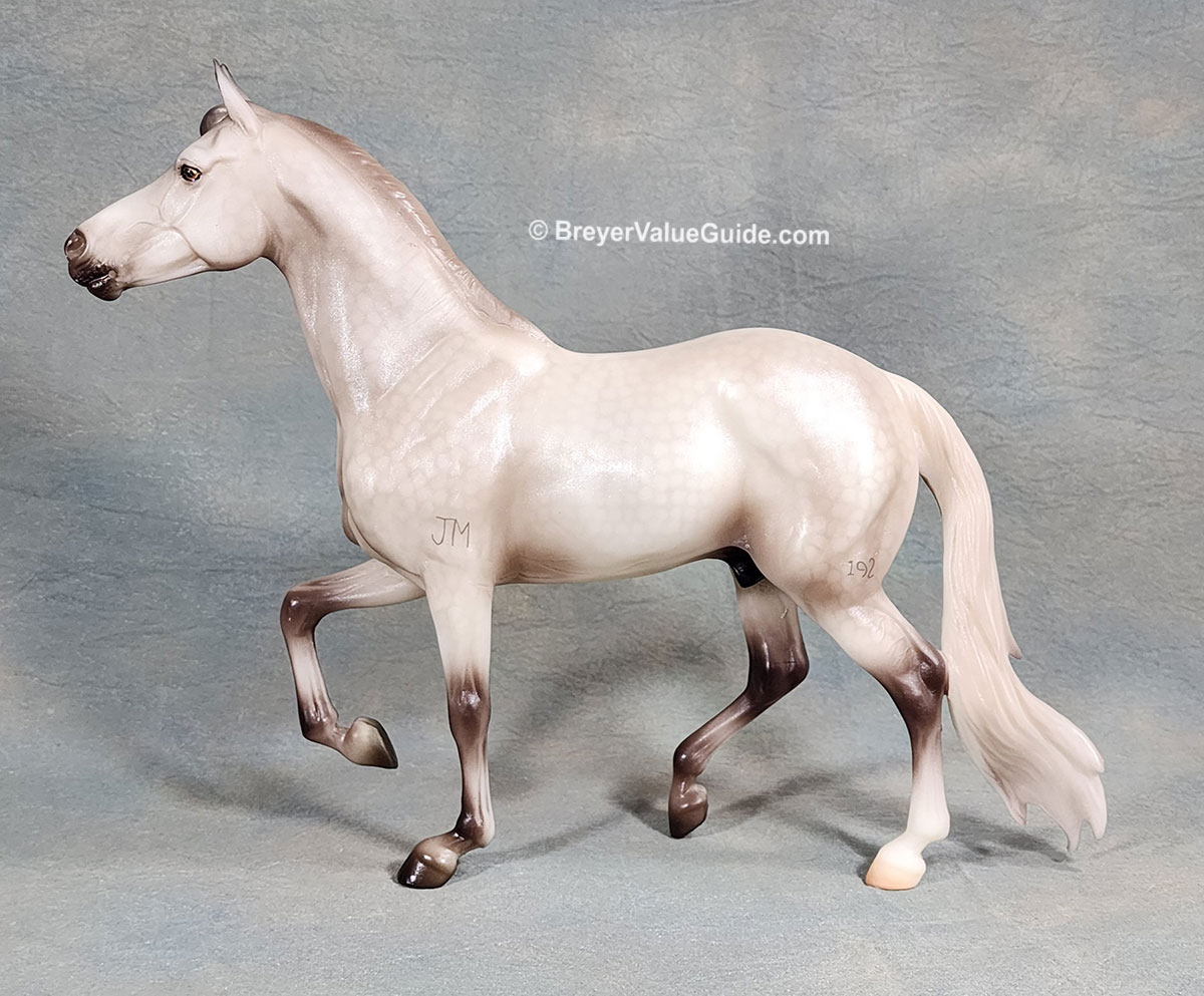Metallic sheen; dappled grey; hind sock; brands on left shoulder and hip, BreyerFest Celebration SR; 1/8000