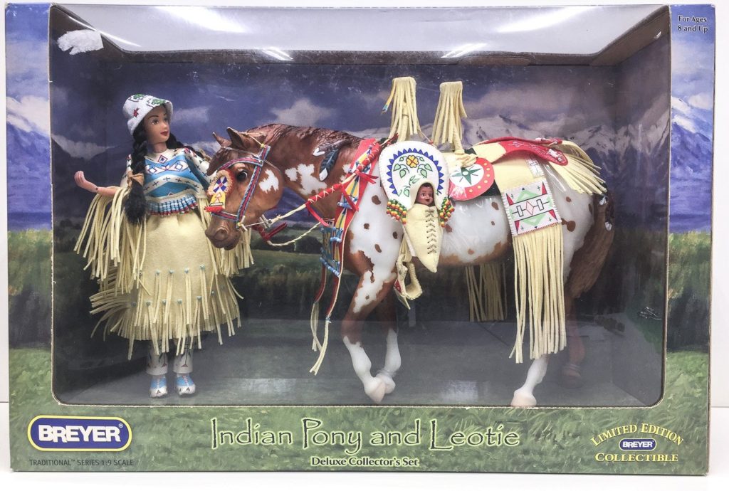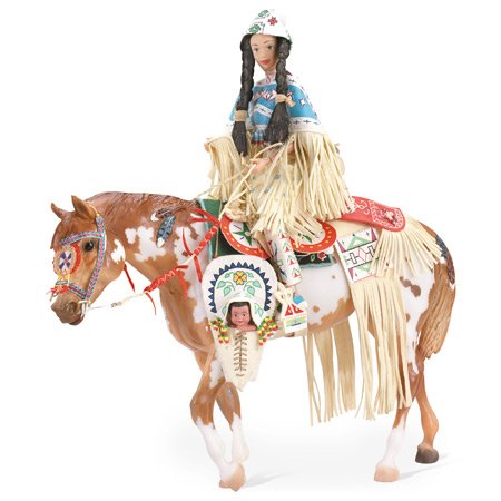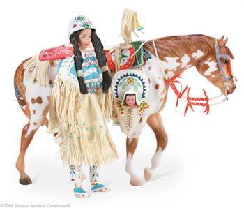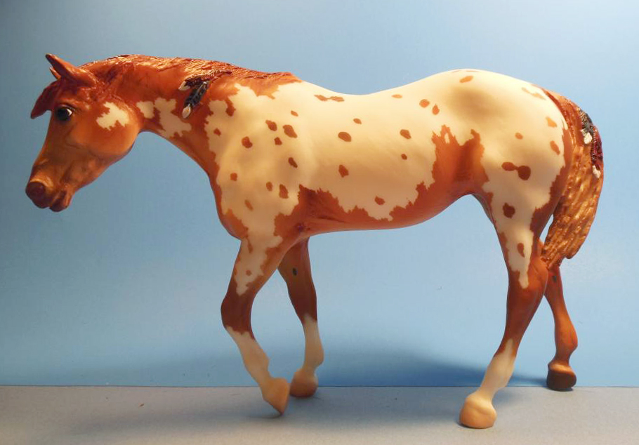 Matte chestnut leopard appaloosa; Native American doll and tack