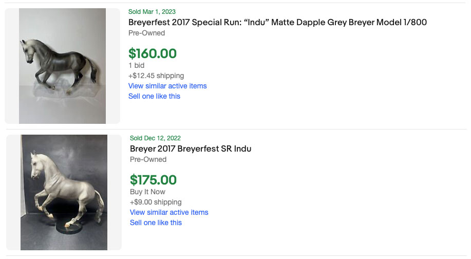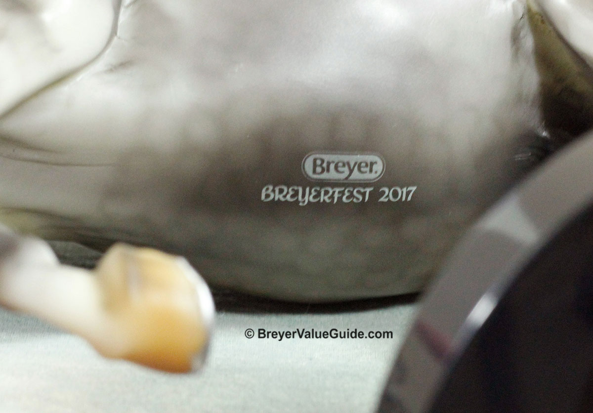 Matte dark dapple grey, leg barring; horseshoes; BreyerFest SR, 1/1600 divided between matte and glossy