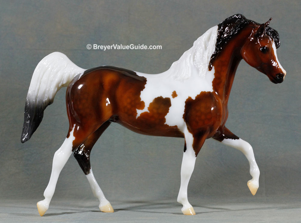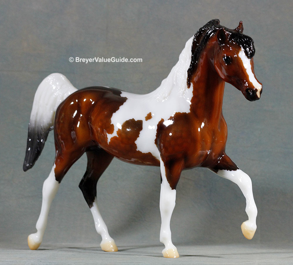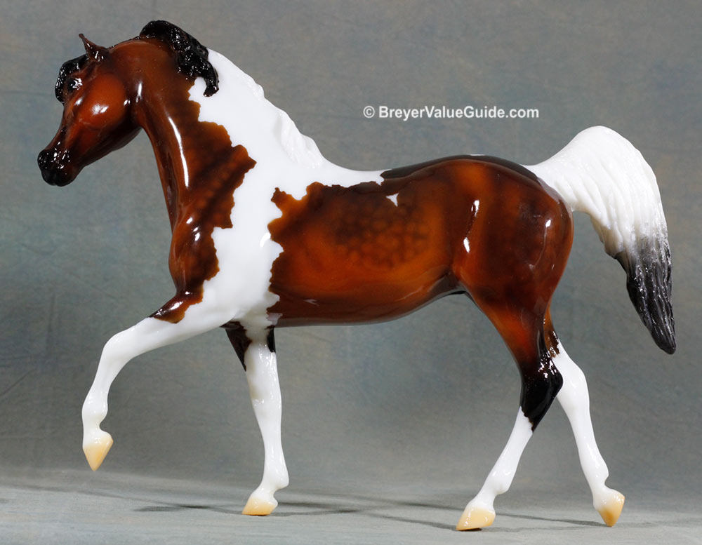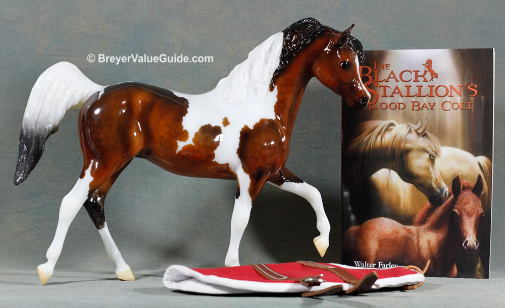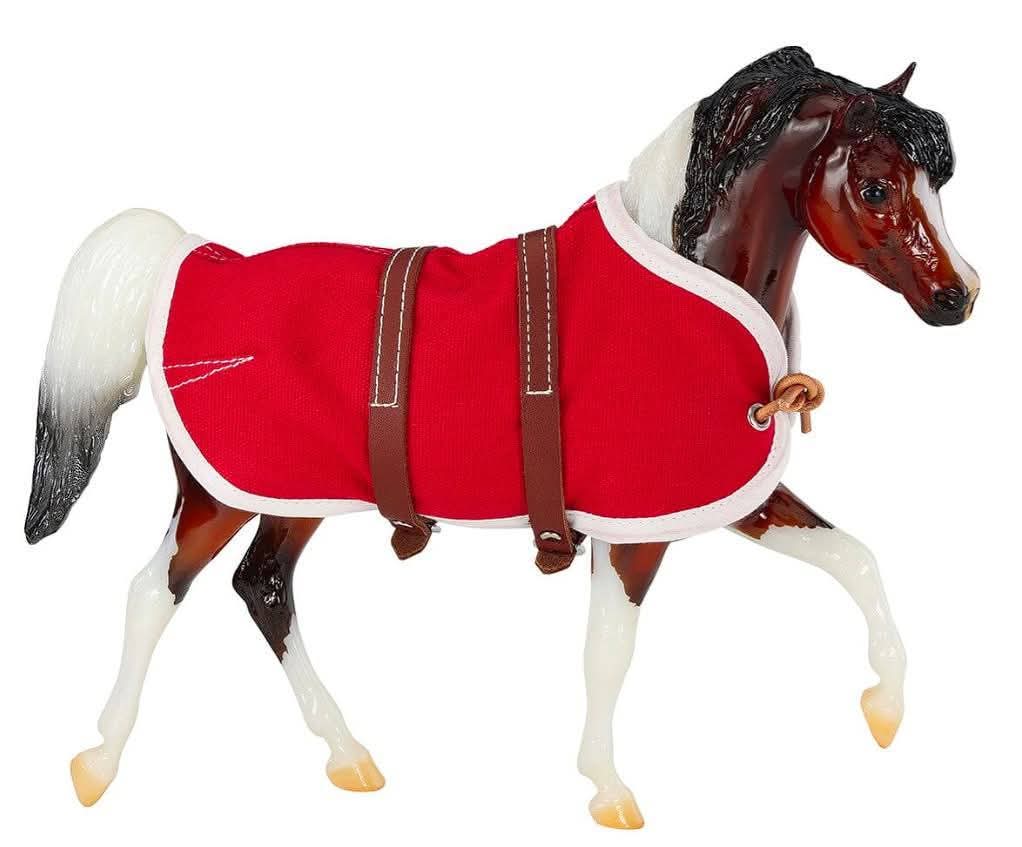 Glossy blood bay pinto, dapples, blaze, 4 stockings, Vintage Club SR, 1/1200 – includes book and red blanket