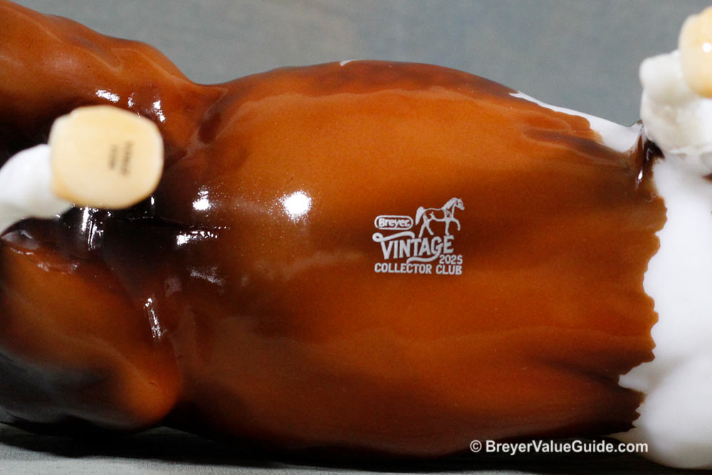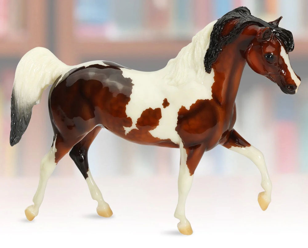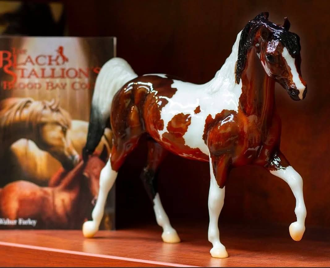 Glossy blood bay pinto, dapples, blaze, 4 stockings, Vintage Club SR, 1/1200 – includes book and red blanket