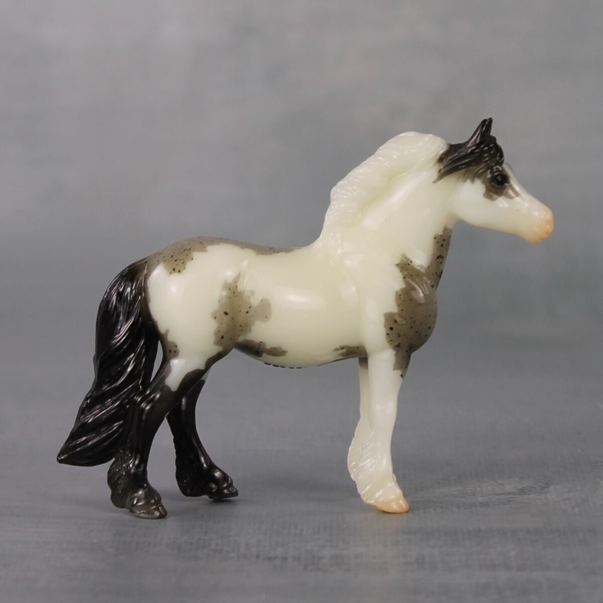 Glossy blue roan pinto, medicine hat, white front legs, Stablemate Club SR, Gambler’s Choice