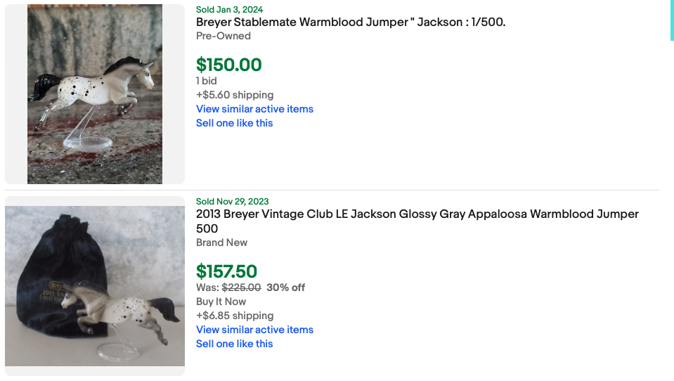 Matte light grey appaloosa; black splash spots; black mane and tail; Vintage Club SR; 1/500