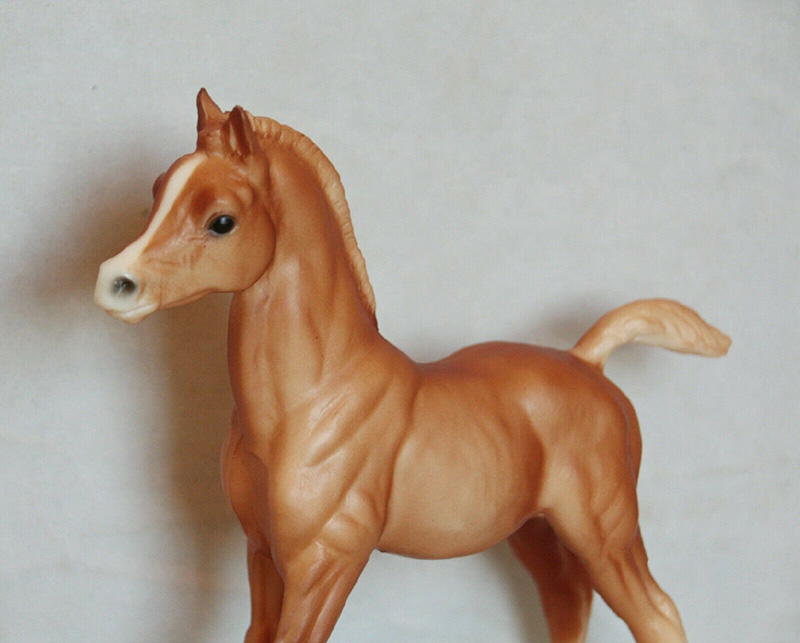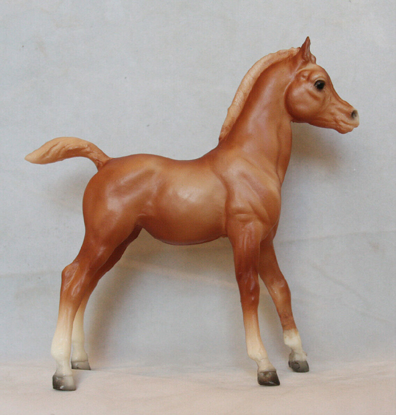 Matte chestnut/sorrel; flaxen mane and tail; blaze with white muzzle; 4 socks; grey hooves; JCPenney SR – with Family Arabian Mare and Family Arabian Stallion