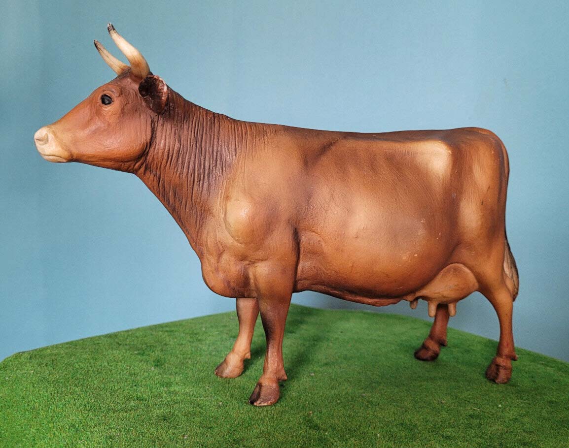 Matte dark tan, lighter nose, grey hooves, natural horns with black tips