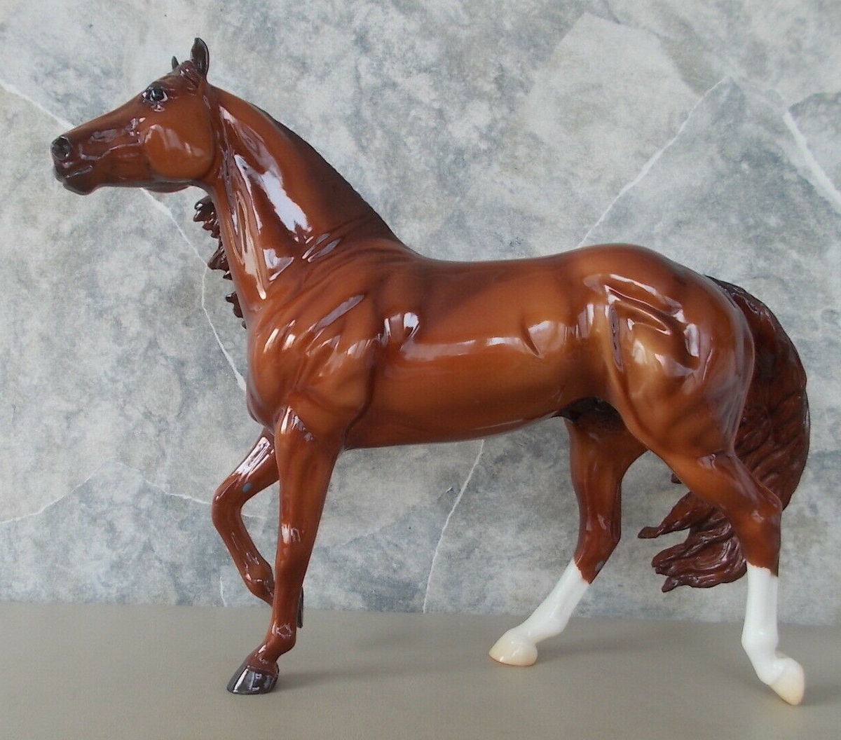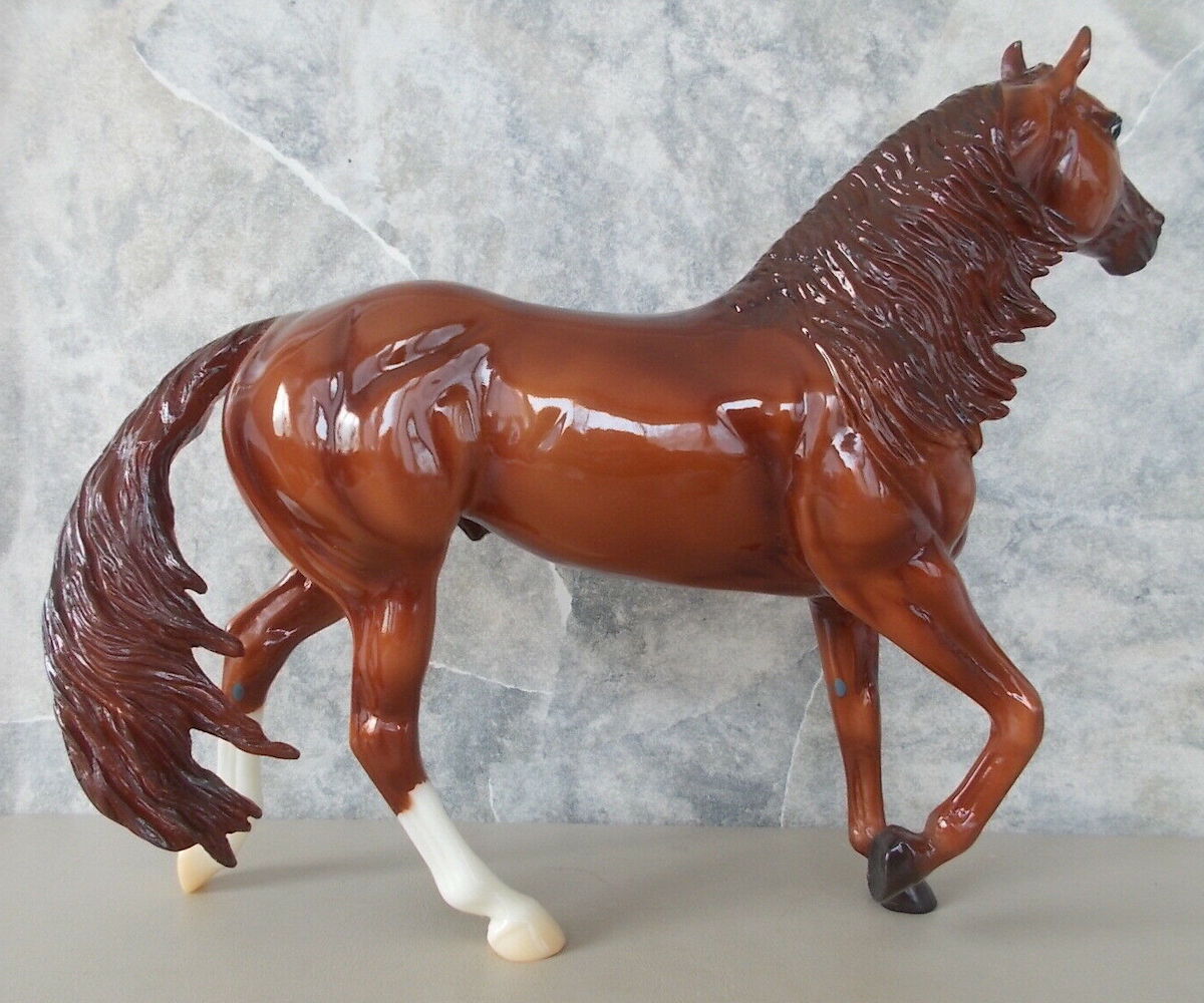 Glossy red chestnut; stripe, 2 hind socks; Tractor Supply TSC SR; 1/3000