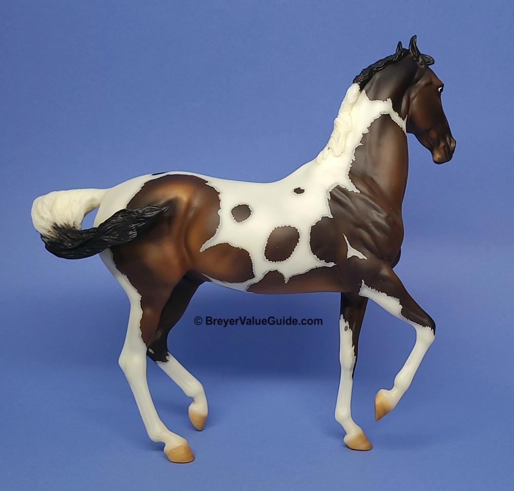 Matte bay pinto; mapped markings; large star, large snip, 4 stockings; Premier Club SR; 1/741