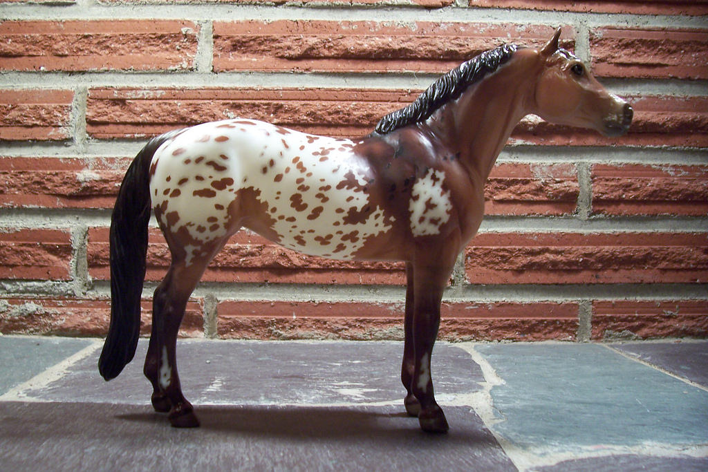 Matte bay; semi-leopard appaloosa; detailed stenciled blanket; star; mottled muzzle; with new mane and tail; Connoisseur SR; 1/350