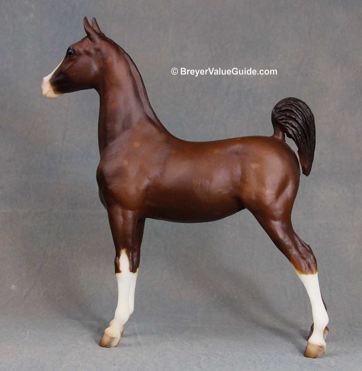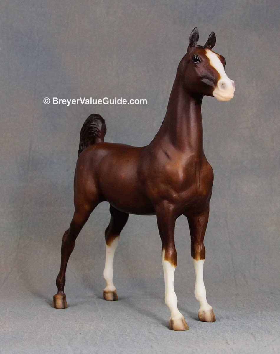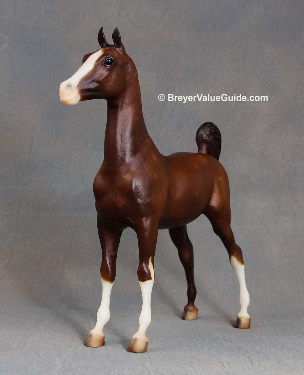 Matte dark chestnut with resist dapples; 3 socks; wide blaze