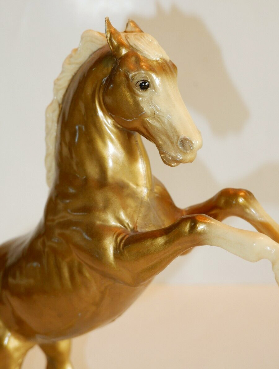 Glossy gold charm, bald face, white mane and tail, 4 stockings
