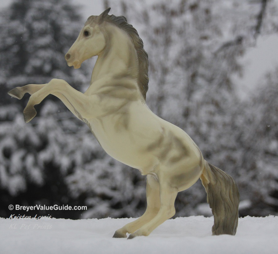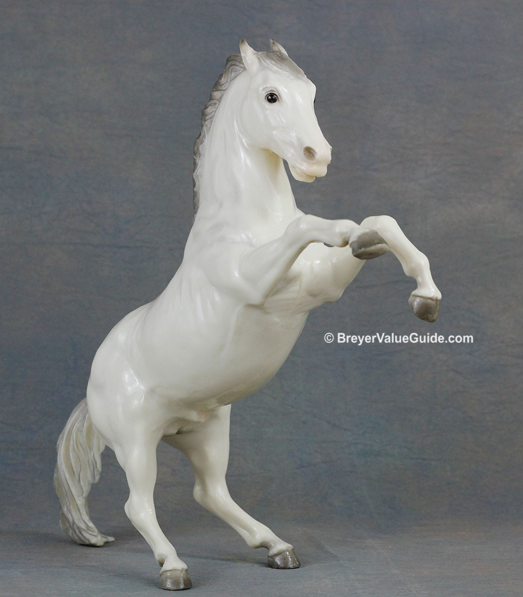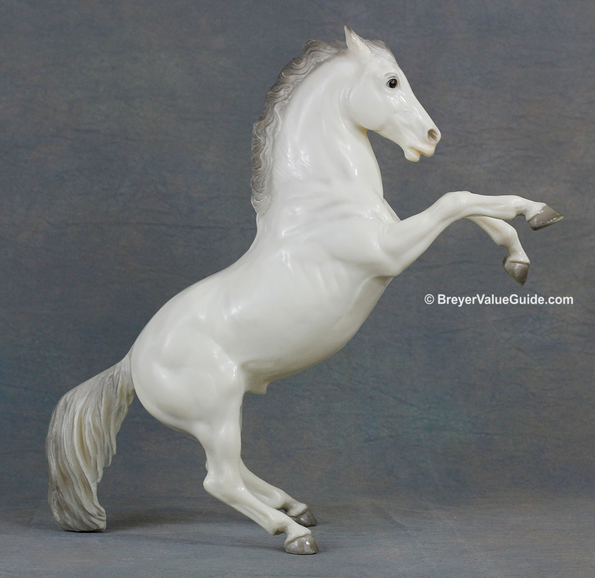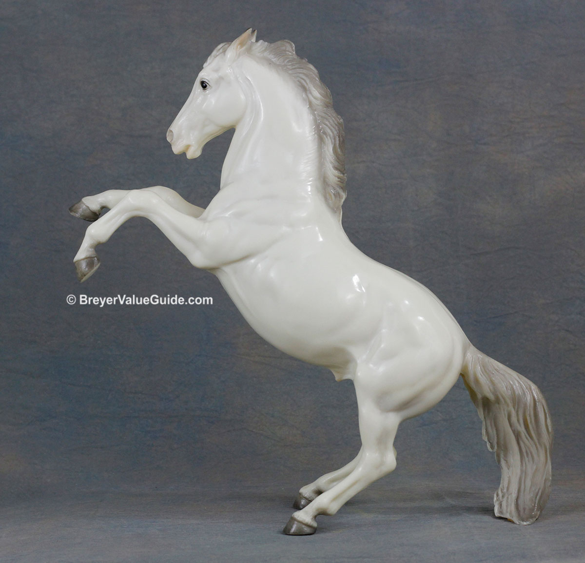 Glossy alabaster, grey shaded mane and tail, some models have muscle shading, grey hooves, pinked muzzle and ears