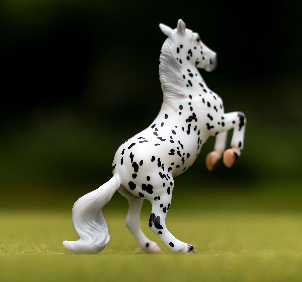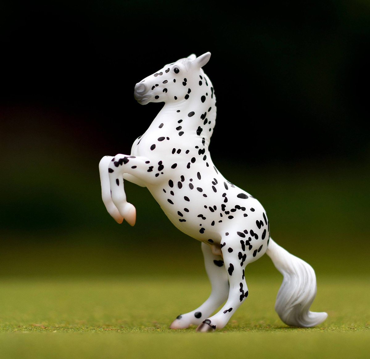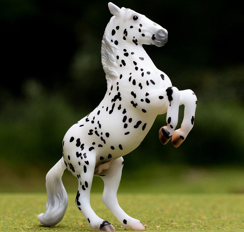 Matte leopard appaloosa; stenciled black spots; natural hooves with stripes; Stablemate Club SR