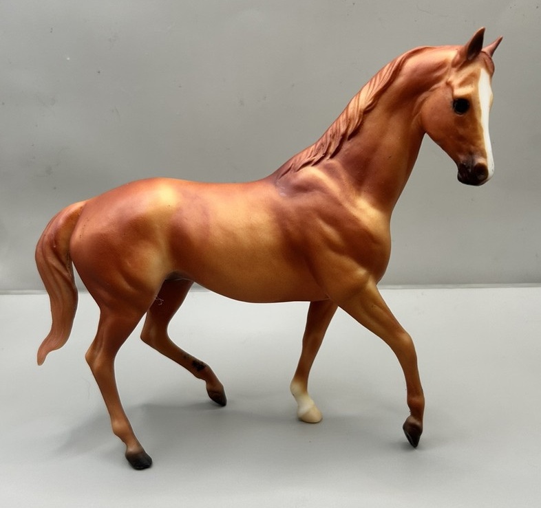 Matte red chestnut; blaze; 1 front sock; QVC SR – with Ruffian; Silky Sullivan