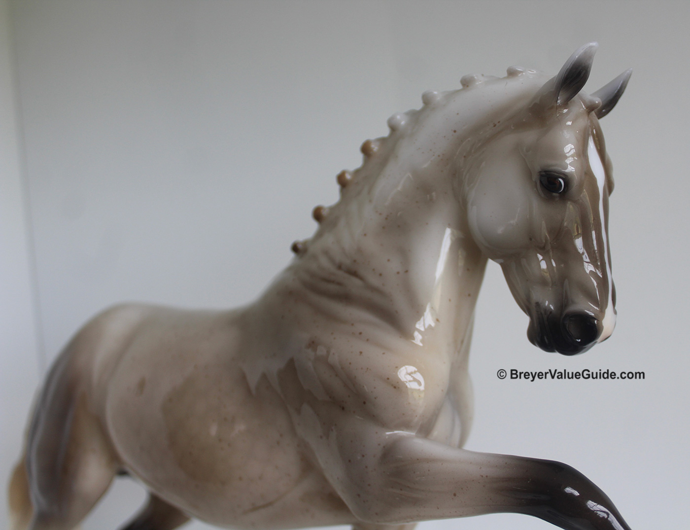 Glossy dappled rose grey, star-stripe-snip, flea-bites, 4 socks, striped hooves, BreyerFest SR, 1/1150 in gloss (matte/gloss split run)