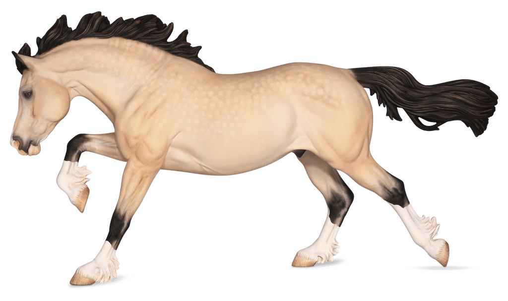 Matte buttermilk buckskin, dapples, blaze over muzzle and under chin, 4 socks, Premier Club SR Issue price: $175
