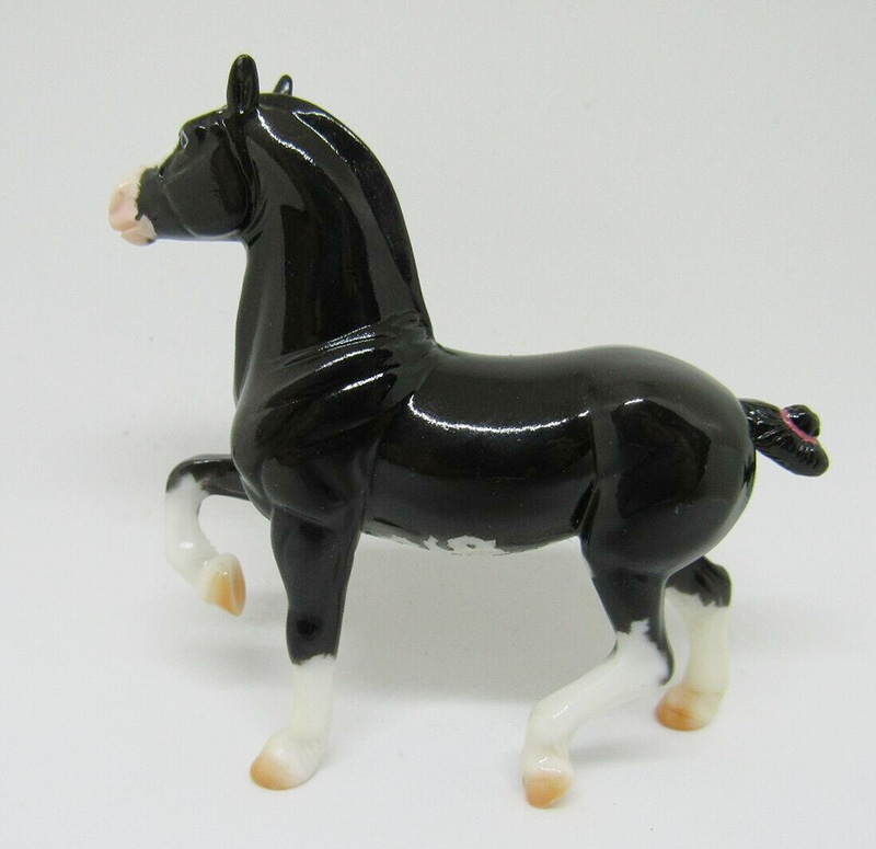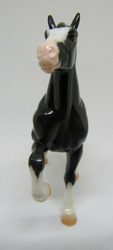 Glossy black sabino pinto; wide blaze over pinked muzzle; 4 socks; pink tail ribbon; BreyerFest Gamblers’ Choice 1-Day Ticket Model; 1/1000