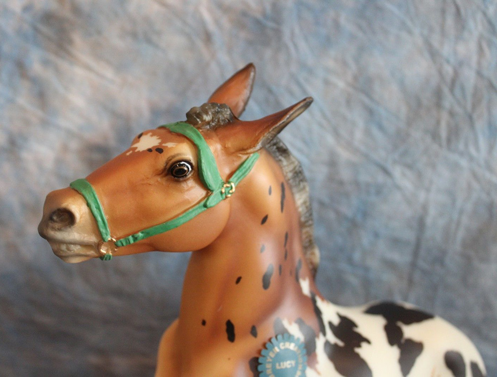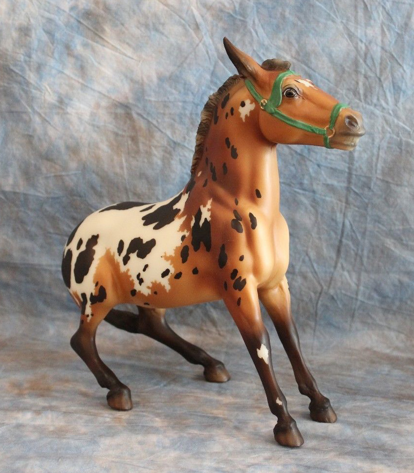 Brown with black spotted blanket appaloosa; Blue Ribbon sticker; green halter; Vintage Club SR; 1/500